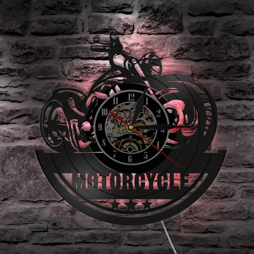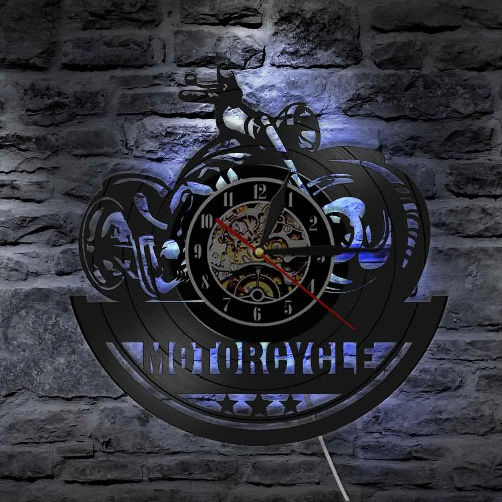 Американские классические настенные часы для мотоциклов, винтажные виниловые часы для мотоциклов, светодиодные настенные часы, вывеска для гаража, украшения для гостиной