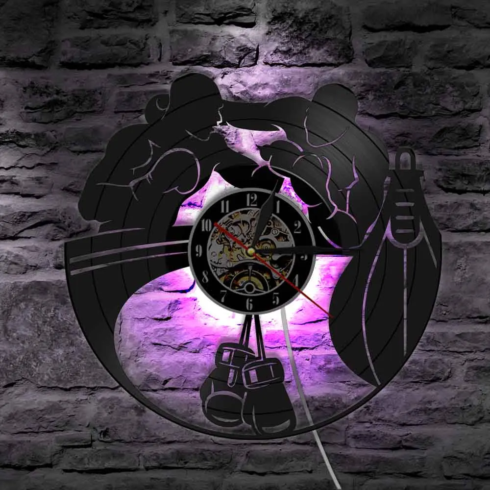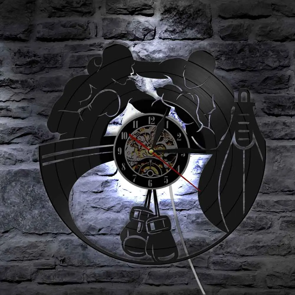 Светодиодный бокс, настенные часы, боксерские перчатки, пробивной мешок, виниловая запись, настенные часы, спортивные, домашний декор, reloj de pared