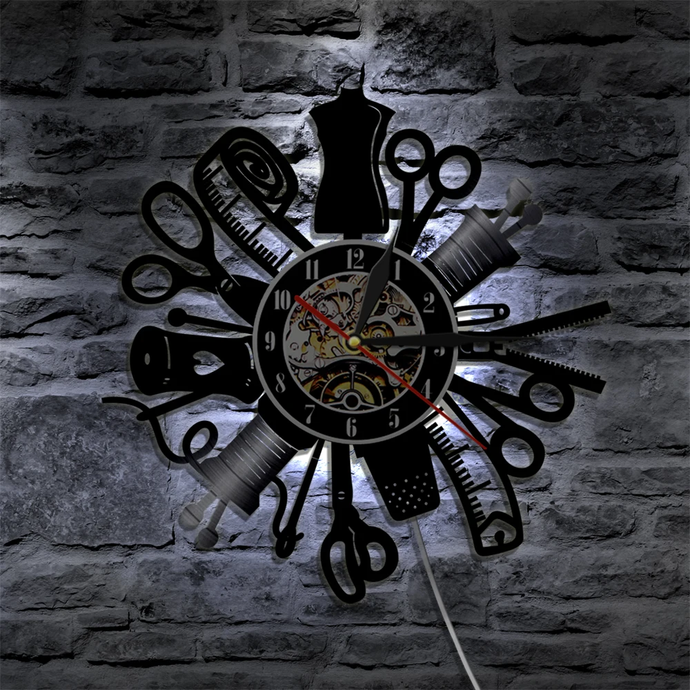 Старинная швейная машина настенные часы виниловая запись настенные художественные декоративные светодиодные часы Современный дизайн Модный магазин Декор reloj de pared