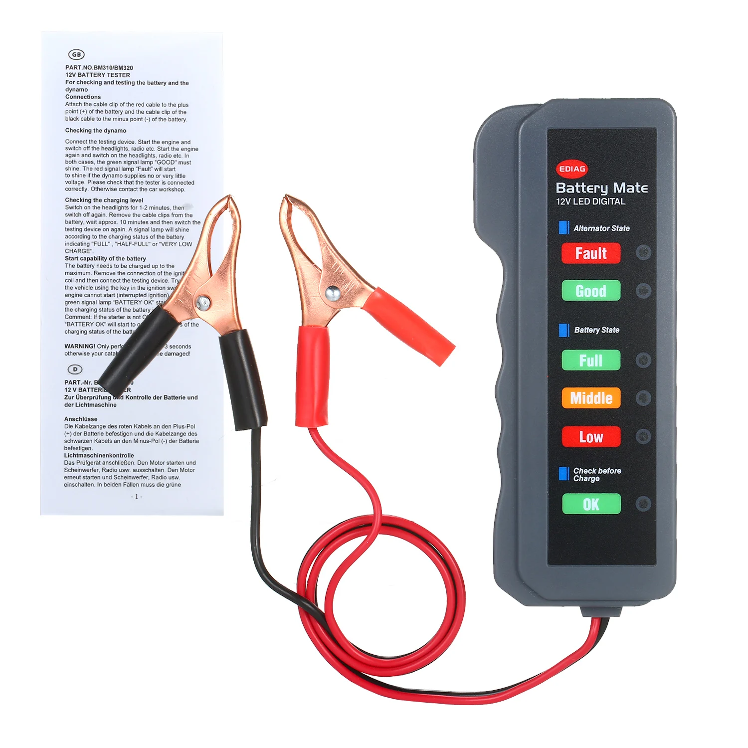 Тестер автомобильного аккумулятора--- Отличный помощник для вас, чтобы проверить здоровье автомобильного аккумулятора, скручивание и зарядку, чтобы вы могли точно знать, нужна ли батарея замена или просто подзарядка. Экономьте свое время и деньги.