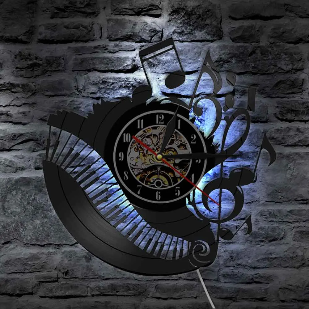 Виниловые часы для фортепиано и нот, выполненные на заказ, светодиодный виниловый диктофон