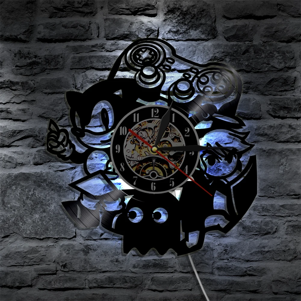 Винтажные видео игры настенные часы геймеры виниловая запись светодиодный настенные часы украшение для гостиной настенный знак игры для мальчиков подарок reloj de pared