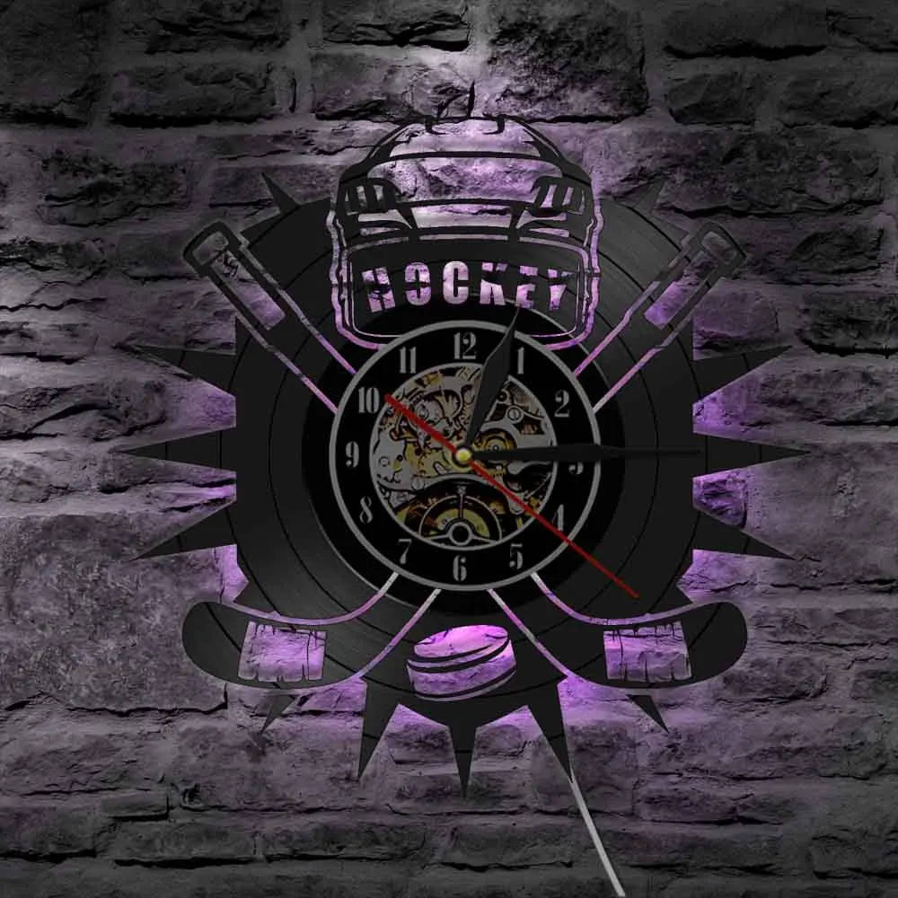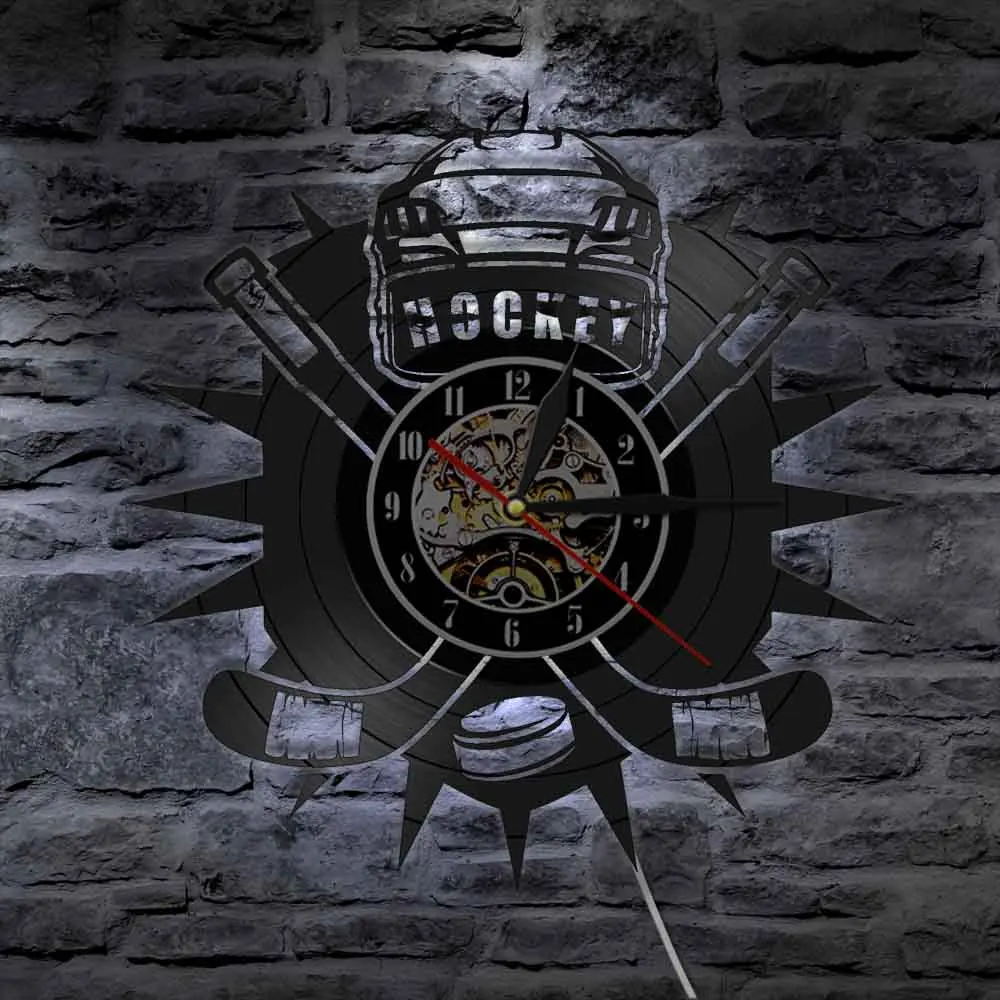 Хоккейные часы хоккейная команда логотип хоккейные клюшки и шайба виниловая запись настенные часы хоккейные фанаты подарок украшение для гостиной