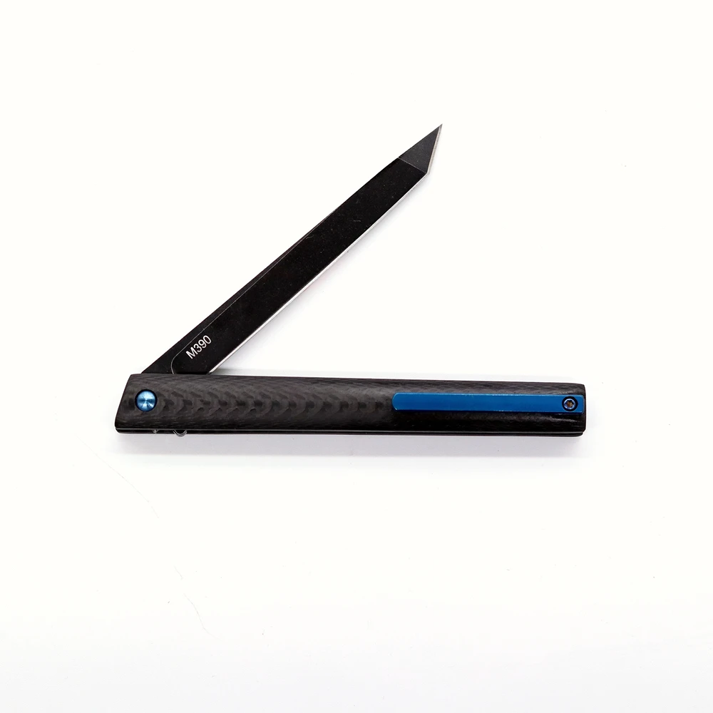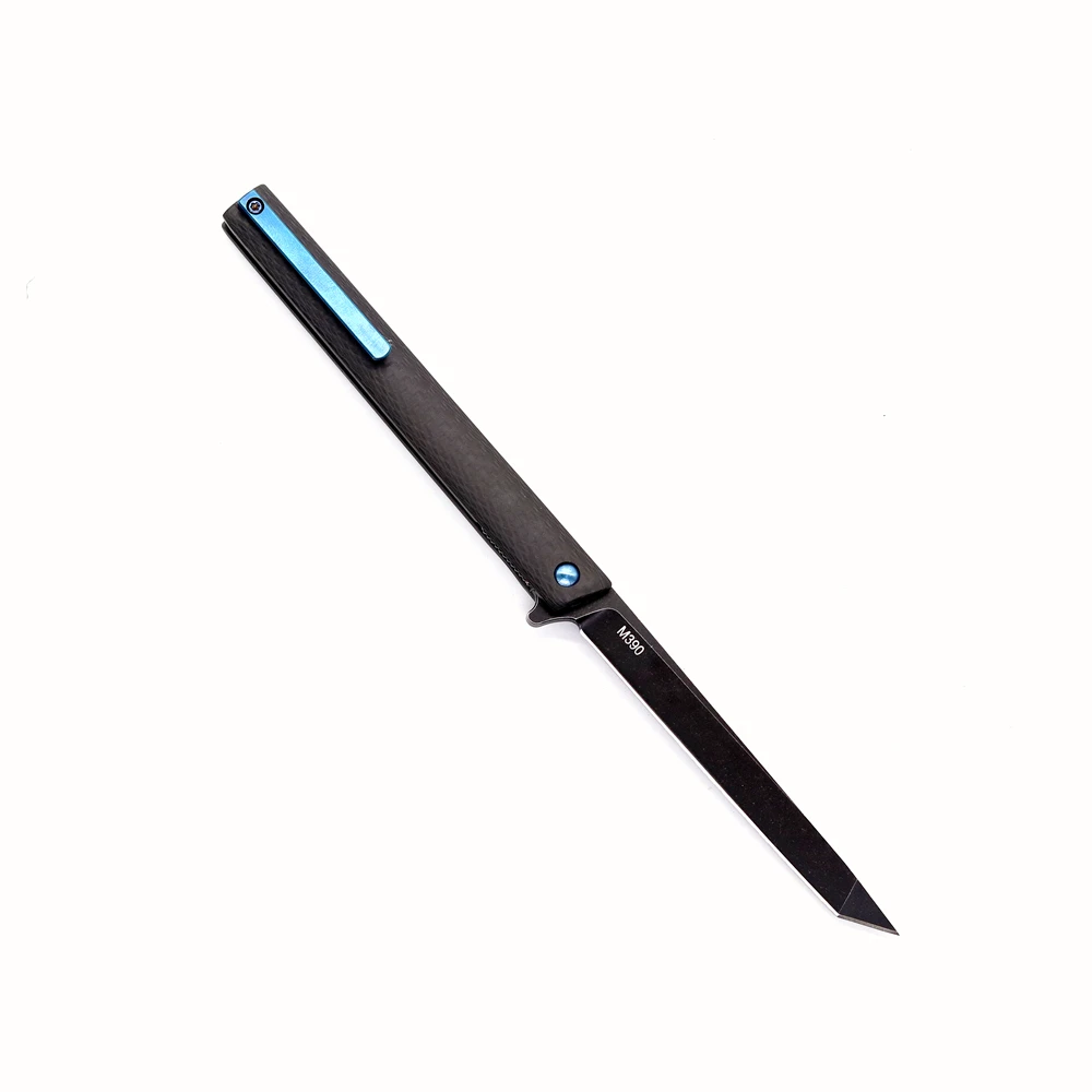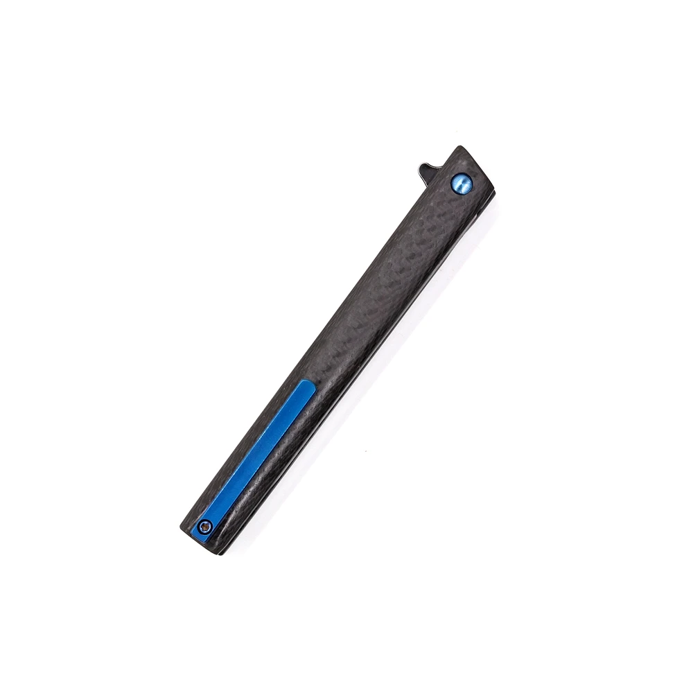 Полная длина: 201 мм Длина клинка: 88 мм Длина ручки: 110 мм Ширина клинка: 11 мм Толщина клинка: 2 мм Материал клинка: M390 Твердость: 60-61HRC (вакуумная масляная Термическая обработка закалки + Закалка 2 раза) Поверхность клинка: черный титан Материал ручки: углеродное волокно Держатель для ножей: титановый зажим для волос обладает дополнительной гибкостью Упаковка: черная коробка