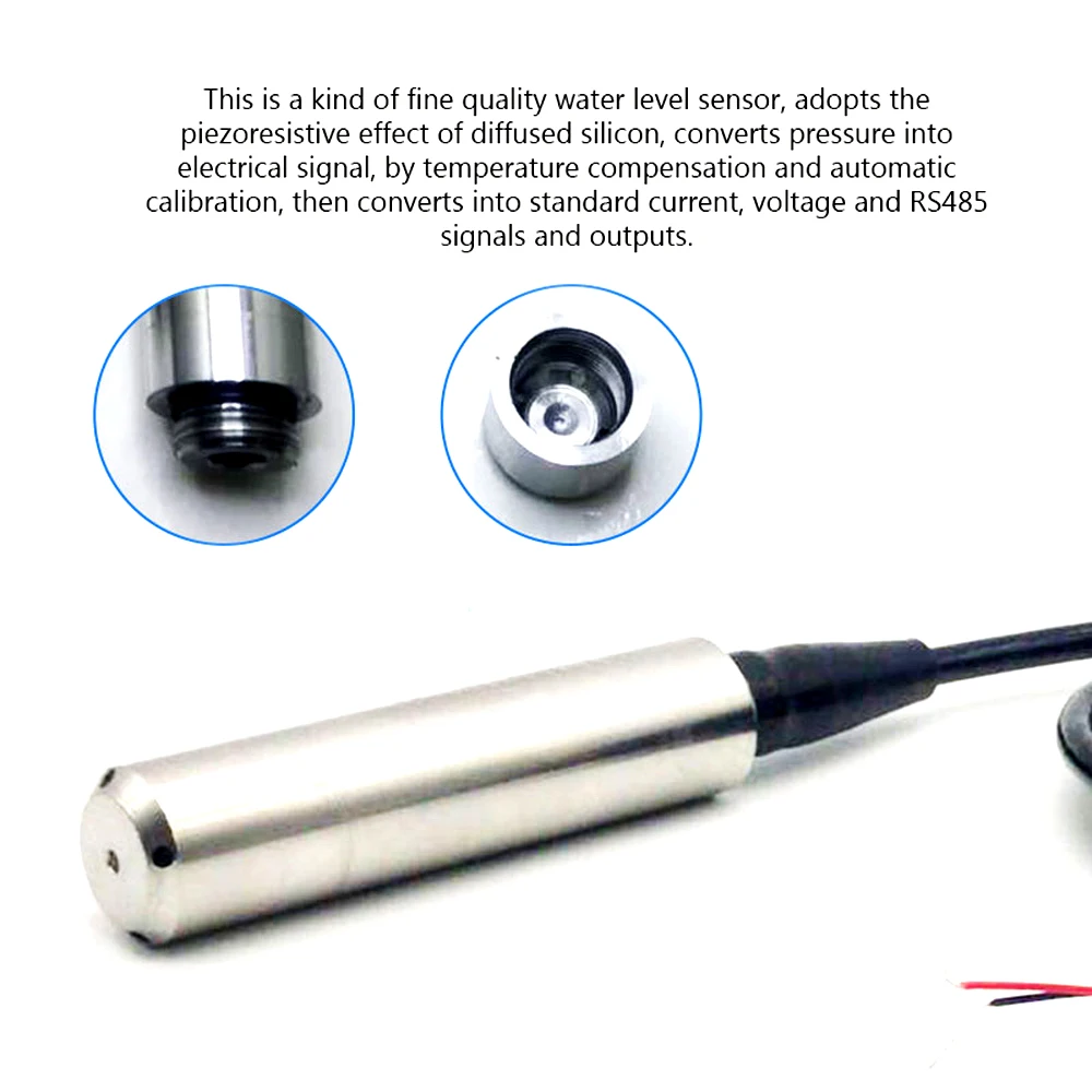 Это своего рода качественный датчик уровня воды, принимает Пьезорезистивный эффект диффузного кремния, преобразует давление в электрический сигнал, компенсация температуры и автоматической калибровки, затем преобразует в Стандартный ток, напряжение и RS485 сигналы и выходы. Он может быть непосредственно подключен к PLC/DCS, дисплейному прибору и компьютеру, передача удаленного сигнала также может быть осуществлена. 5-core; Воздухонепроницаемый экранированный кабель, IP68 водонепроницаемый, полностью изоляции цепи и анти-помех. Широко используется в жидкостях измерения нефтехимии, водоснабжения и дренажа, защиты окружающей среды и электроэнергии ..