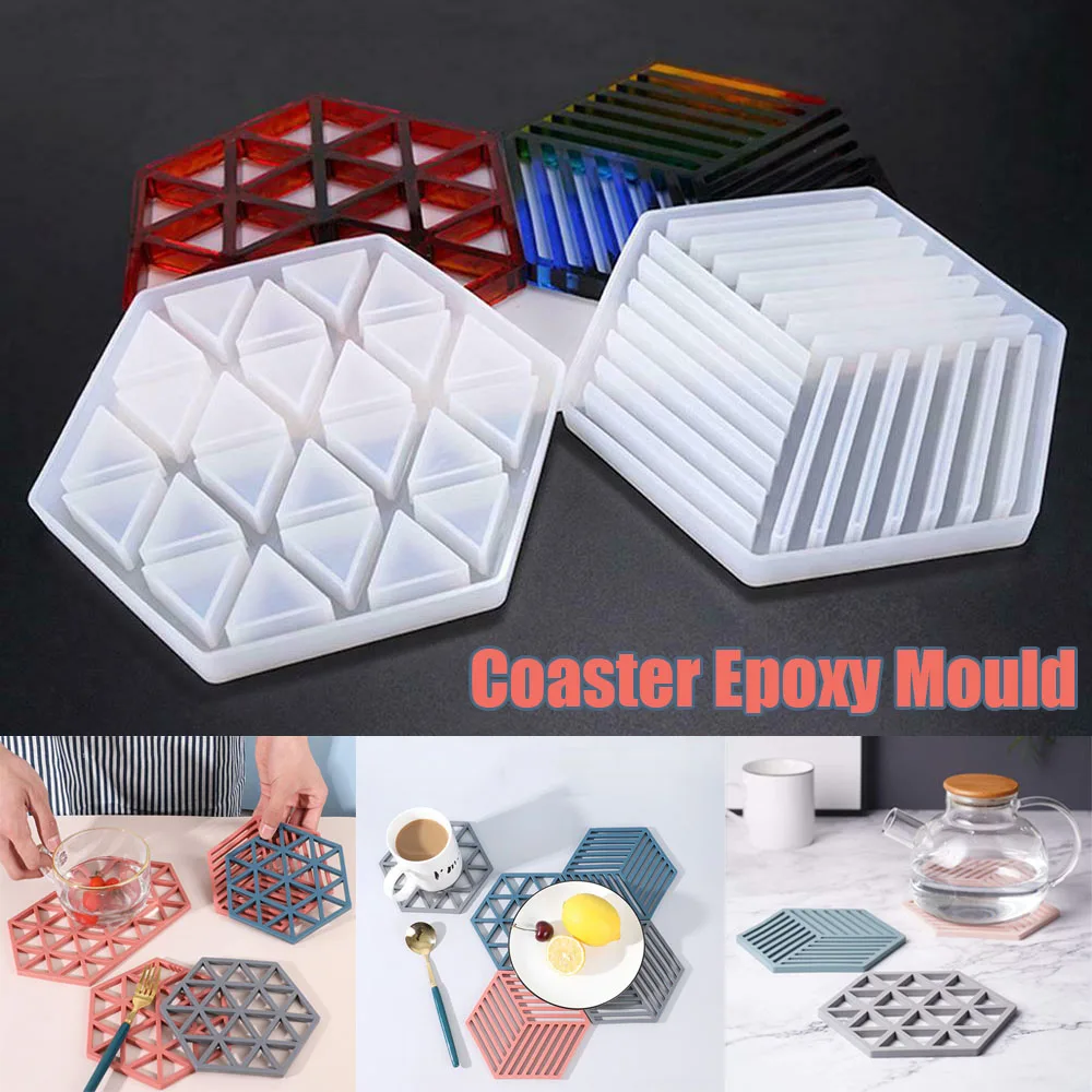1 шт. шестигранные горки формы из смолы силиконовые формы, включая внутренний треугольник и полосу формы для горки подставка для напитков и чаши мат