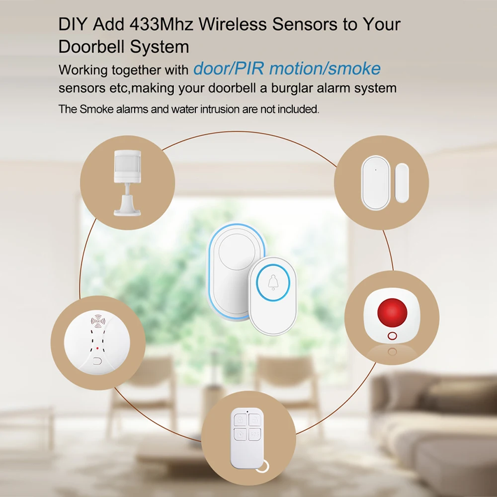 * Добавьте 433 МГц датчик движения двери/PIR/дыма в вашу систему сигнализации звонка, он будет ptrotect вашей домашней безопасности.