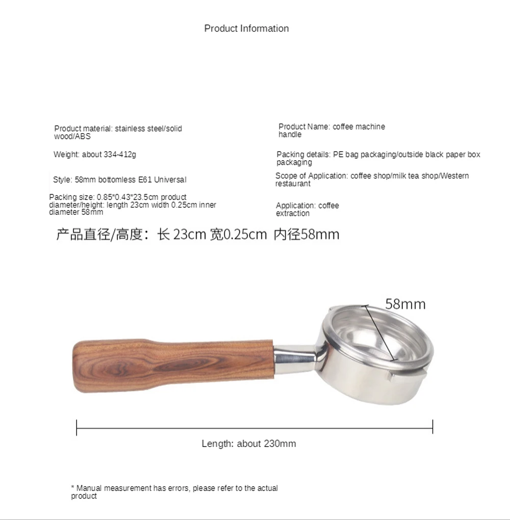58 мм кофе машина ручка бездонная твердая древесина нержавеющая сталь для E61 ручка кофе машина модифицированный фильтр