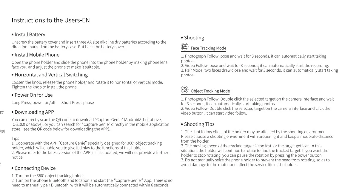 Селфи-палка для мобильного телефона может отслеживать и снимать предметы в режиме реального времени, следить за перемещением предметов, например, когда собака движется, мобильный телефон также следует за собачкой, а затем автоматически снимать.