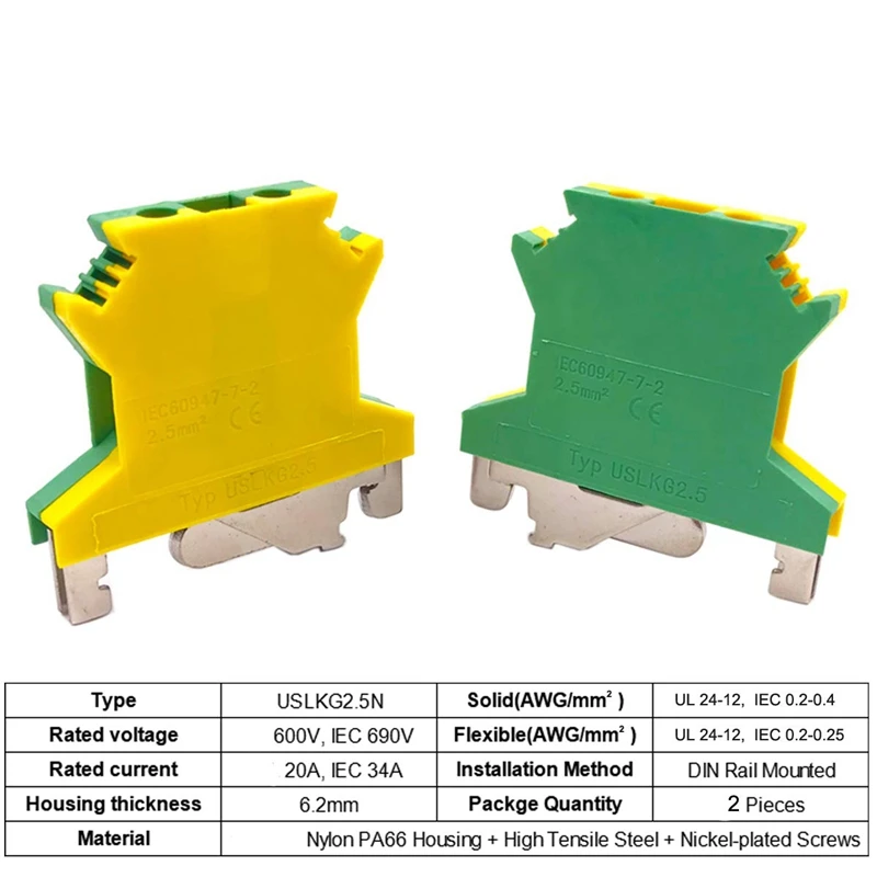 [Соединители заземления Клемма заземления] блоки Клемма заземления обеспечивают легкую в идентификации, удобную, аккуратно организованную шину заземления, которая устанавливается на din-рейке. Защитные клеммные блоки имеют прочные зажимы для обеспечения плотной фиксации на din-рейках для достижения функции PE.