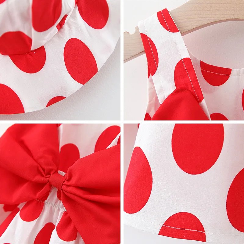 Модный костюм для маленьких девочек; Новинка 2020 года; Платье в горошек для малышей; Летнее хлопковое платье принцессы с шапкой для девочек; Детская одежда из 2 предметов
