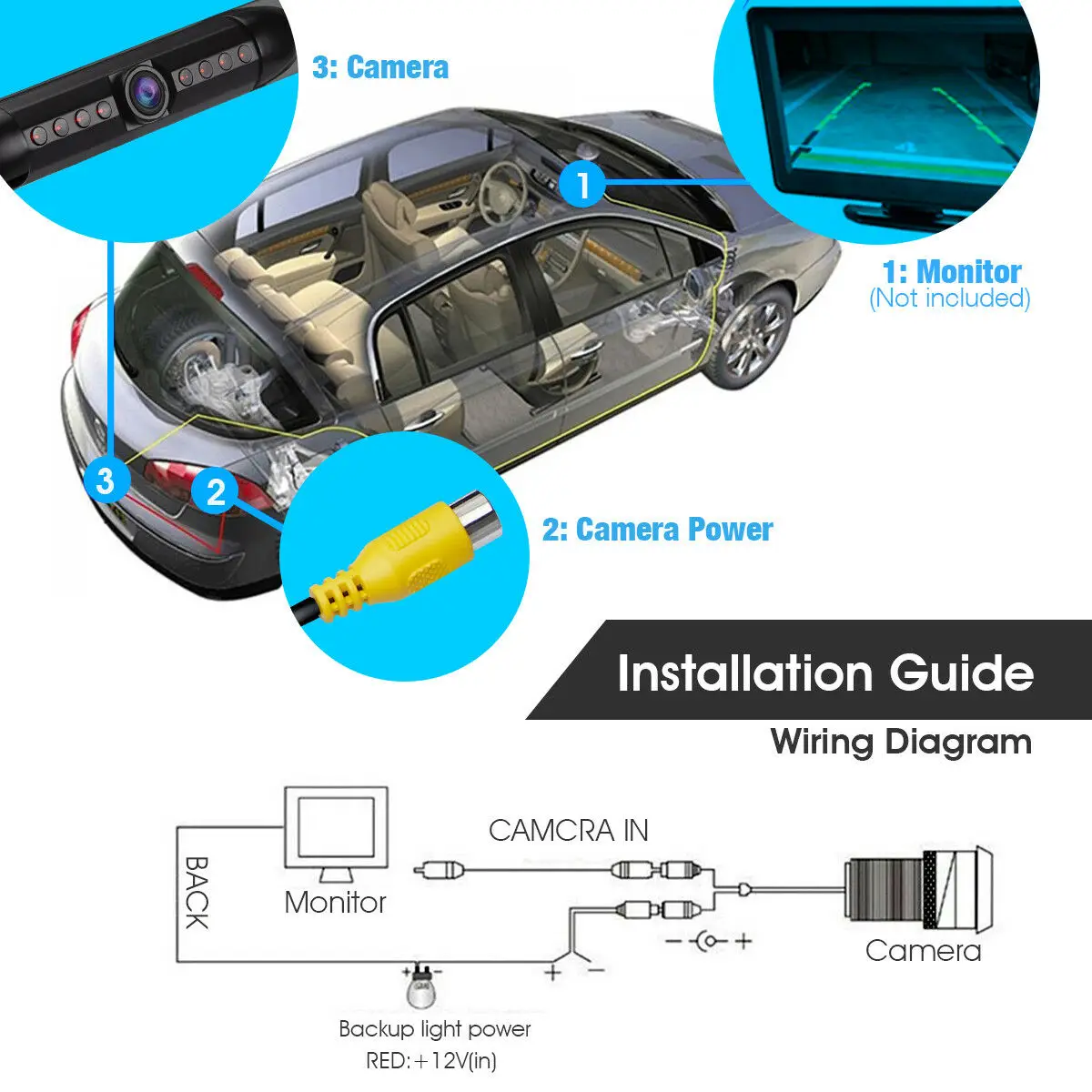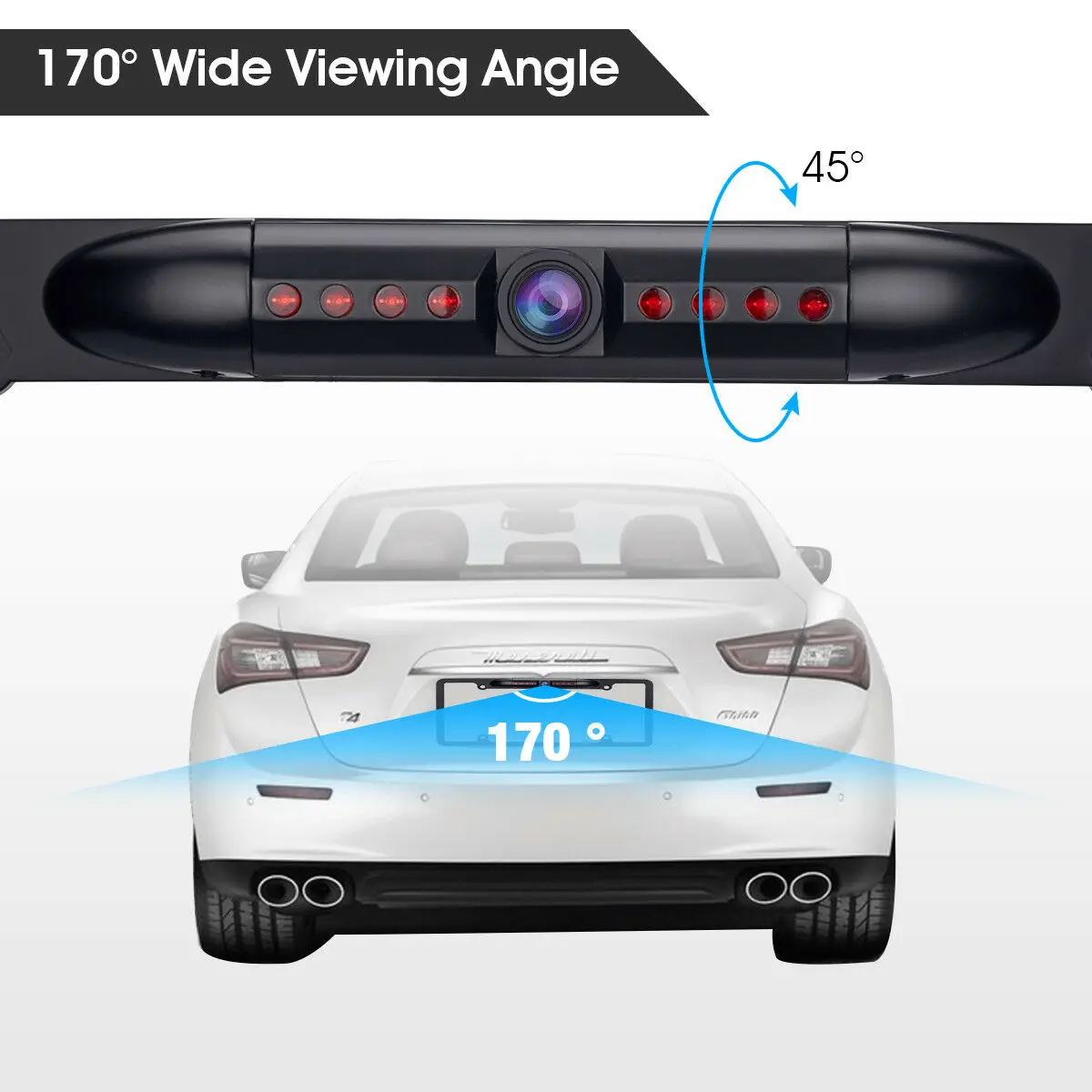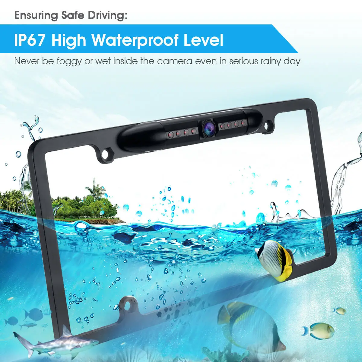 1. Металлическая рамка камеры с IP-67 класса водонепроницаемый и пыленепроницаемый, хорошо работает в жаркую погоду. 2. Цветной CMOS (648*488) imager, с 8 инфракрасным светодиодный, отличное ночное видение, обеспечивает безопасность заднего хода как днем, так и ночью. 3. Макрообъектив камеры с углом обзора 170 градусов, поворотом на 120 градусов вверх и вниз, позволяет настроить его под лучший угол съемки. 4. Легко крепится на номерной знак с существующими винтами, идеально подходит для большинства транспортных средств, которые используют стандартный номерной знак США или Канады.