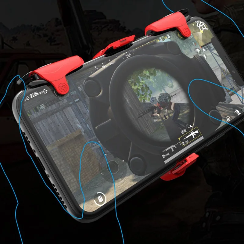 Адаптируется к различным мобильным играм для съемки, таким как игры для мира, PUGB, ножи и т. д. подходит для большинства смартфонов, игровая ручка с клавишей шутера для контроллера с шестью пальцами для PUBG.