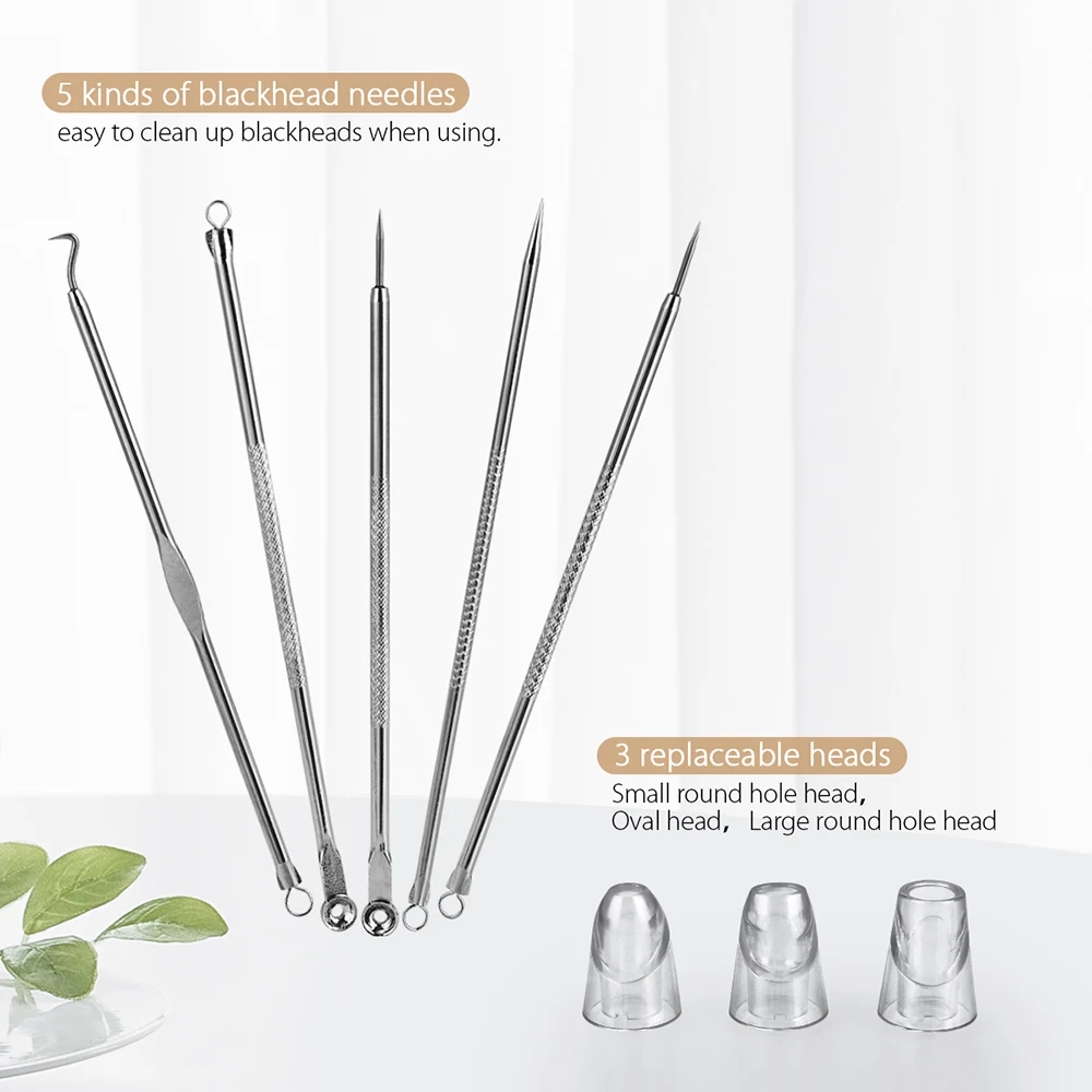 Вакуум для удаления черных точек изготовлен из экологически чистого материала ABS, нетоксичный, который можно безопасно использовать на лице. Вместе с 5 шт игла для удаления угрей. Более чистый и гигиеничный способ, чем ваши пальцы, для удаления примесей, таких как прыщи, угри, белые головы, комедоны и прыщи.
