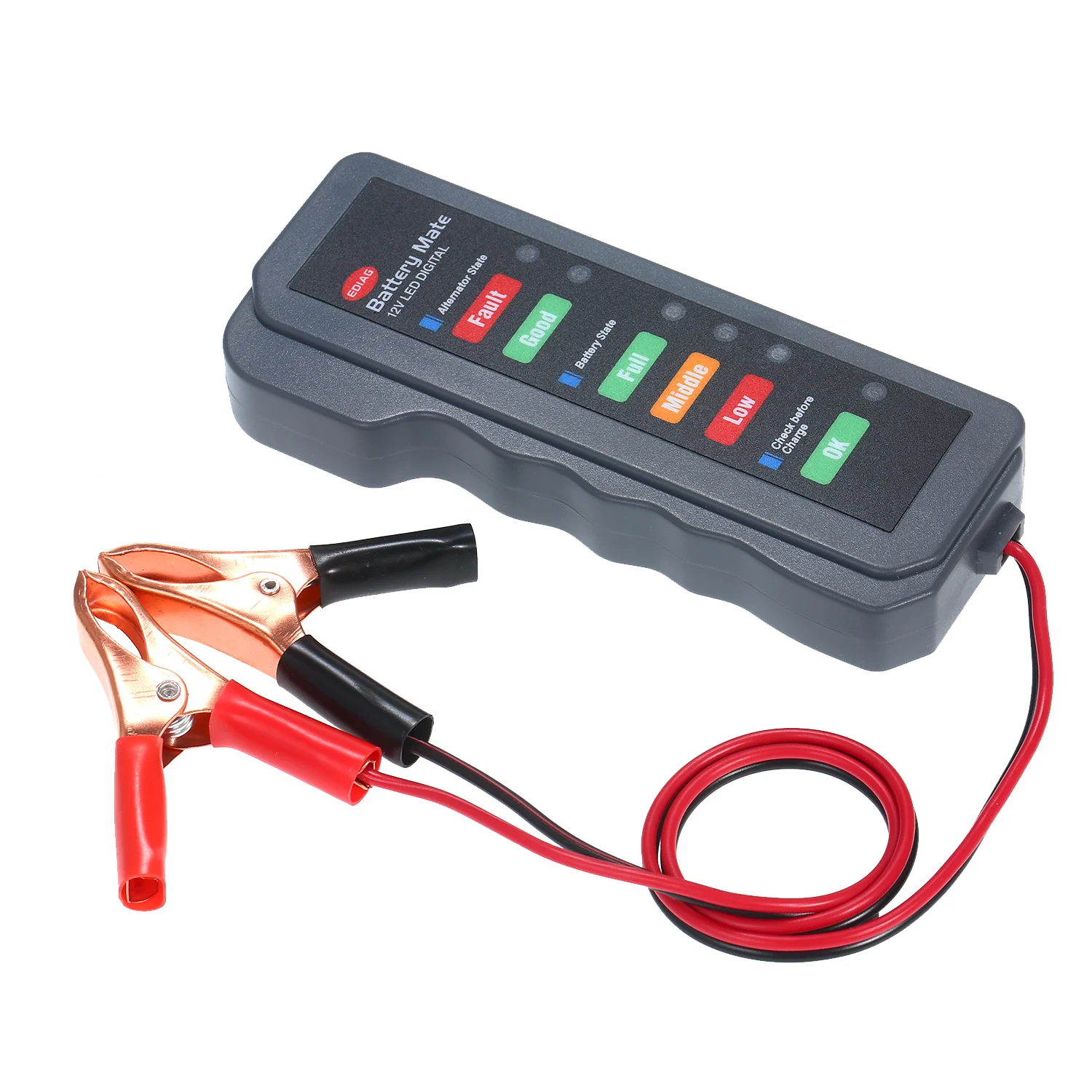 6 светодиодный цифровой дисплей--- 6 светодиодный индикатор интуитивно отображает состояние аккумулятора и генератора, зеленый означает хороший/полный, Оранжевый означает средний, Красный означает низкий. Очень простой. Не нужно знать напряжение, непосредственно скажите вам качество аккумулятора и генератора.