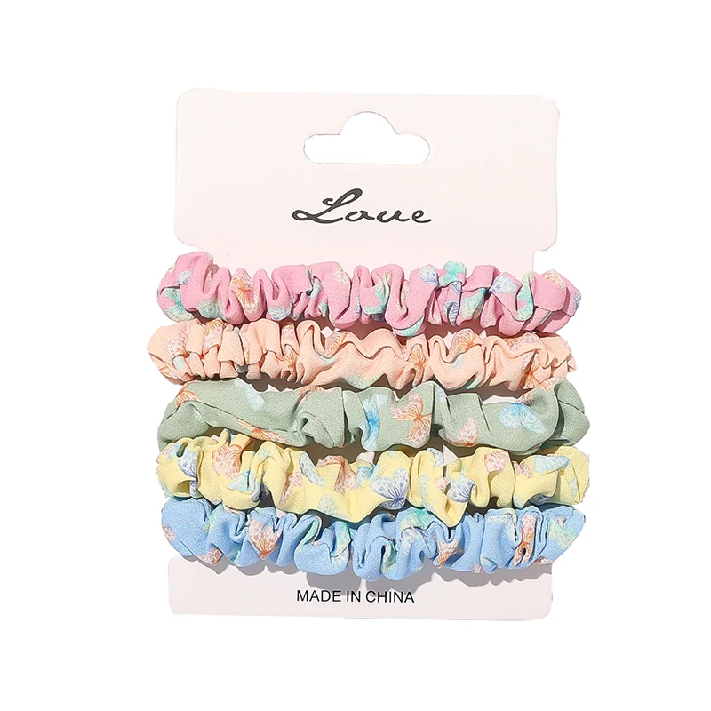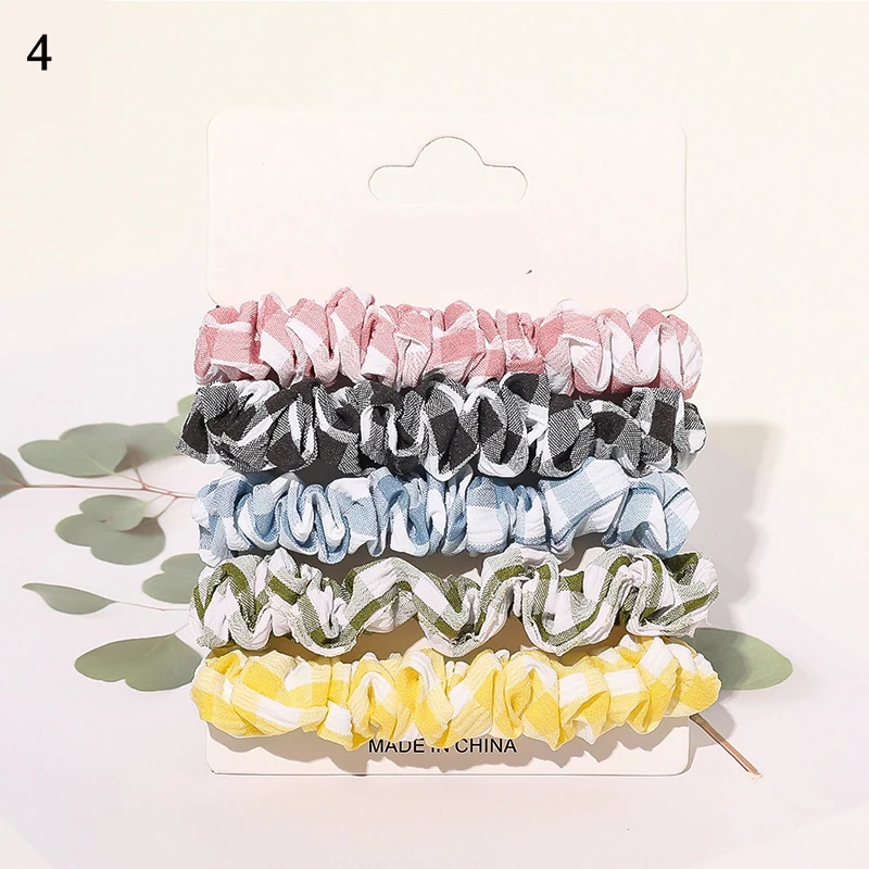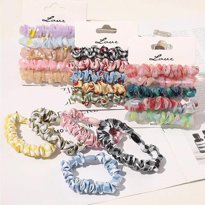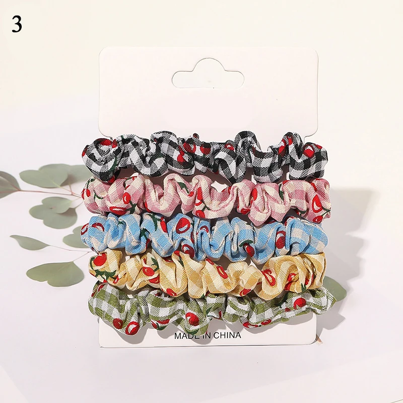 Резинки для волос, эластичные резинки для волос, в клетку, вишня, шифон, органза, 5 шт./компл., Бабочка, клубника, принт, Набор резинок