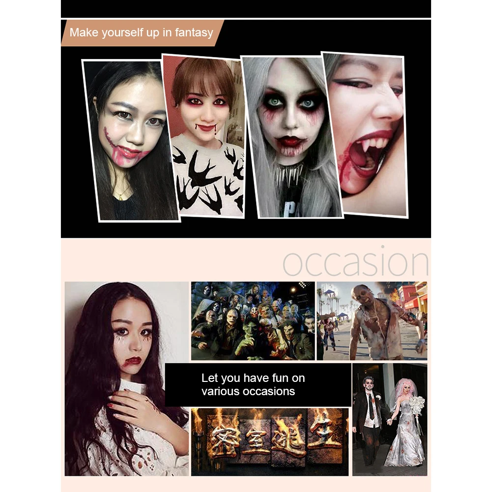-Подходит для Хэллоуина вечерние, маскарадные платья, карнавалы, фестиваль или ТВ-программы спецэффекты, ежедневные розыгрыши и т. Д. Если вы хотите иметь фотоальбом ужасов, это будет лучший продукт