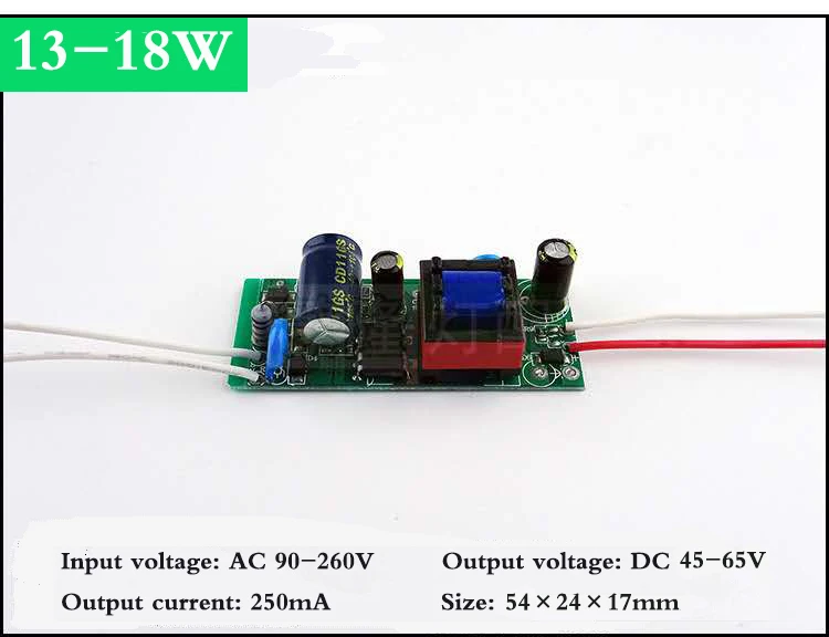 Specifications: 1. Power: 1-3W/4-7W/8-12W/13-18W/18- 24W. 2. Input voltage: AC90-265V. 3. Input frequency: 50-60Hz. 4. Output voltage: DC6-88V. 5.Output current: 240-260mA. 6. This LED driver can be applied two down lamp、ceiling lamp、panel light etc. Packing included: 1 x1pcs led Driver