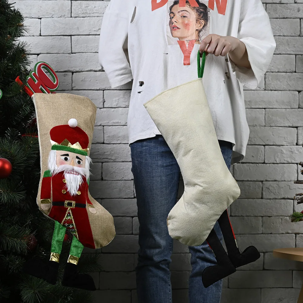 Большие рождественские носки с подвеской Санта Клаус ботинки из кожи лося дерево орнамент Гном Подарочная Рождественская Кукла сумка Рождественская вечеринка домашний декор