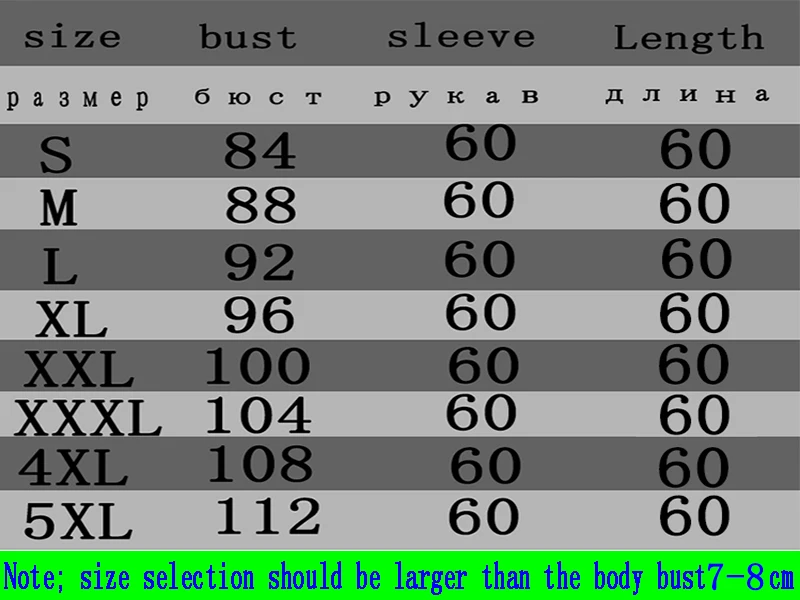 Выбирайте размер одежды на 7-8 см больше, чем обхват груди Например, обхват груди 92 см, 92 + 8 = 100 см Затем вы должны купить одежду с бюстом XXL/100 см И так далее