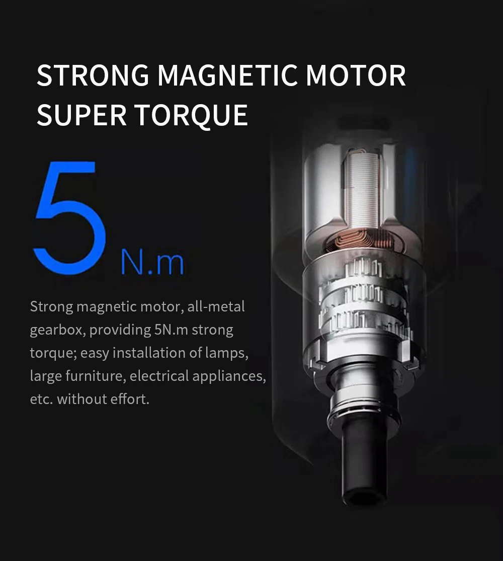Сильный магнитный двигатель, цельнометаллическая коробка передач, обеспечивающая 5N.m1 сильный крутящий момент;Простая установка ламп, больших домов, электрических приборов и т. Д. Без усилий.