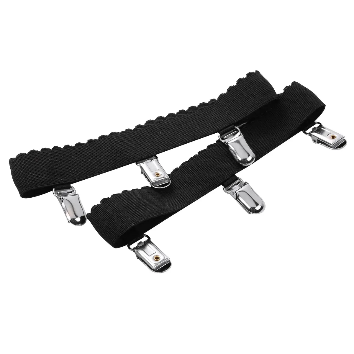 Широкий эластичный пояс с противоскользящей силиконовой лентой внутри, каждый из которых имеет 3 зажима с уткой для надежного удержания носков.