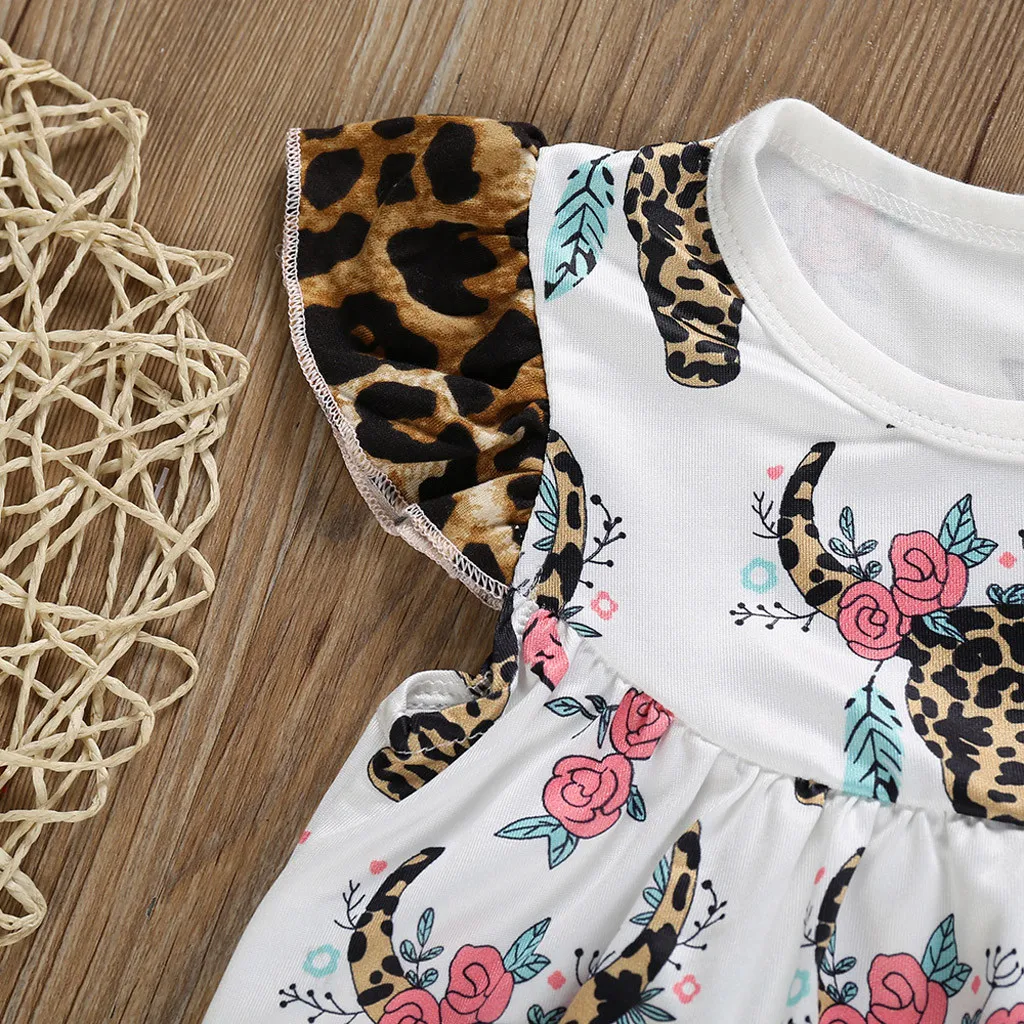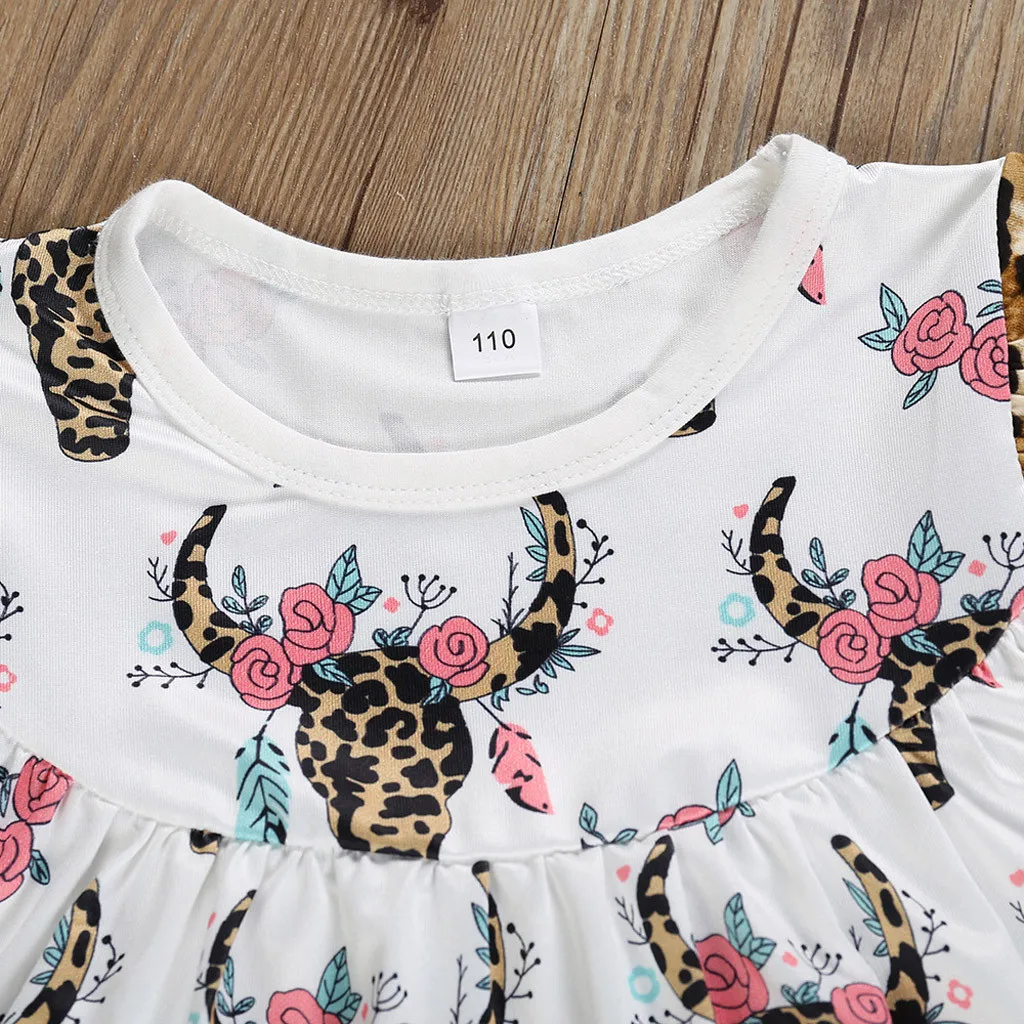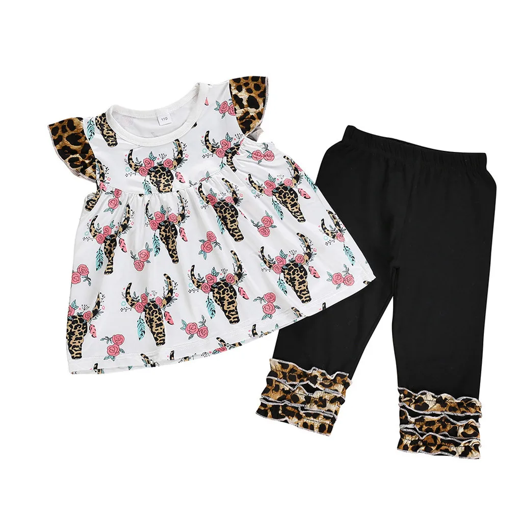 Toddler Kids Baby Boys Girls Cartoon Dress Tops Leopard Print Pants Outfit Set