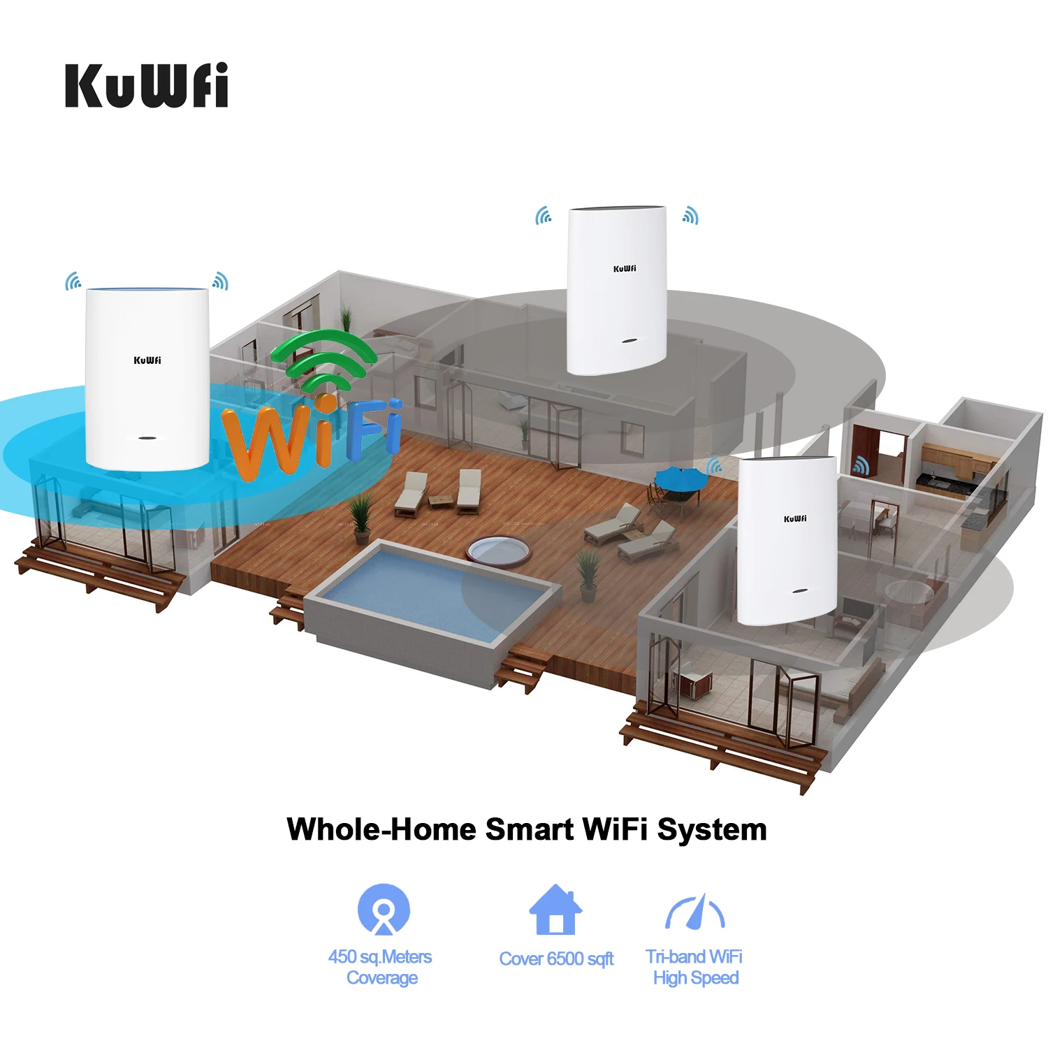 KuWFi трехполосная домашняя сетка обеспечивает более широкий диапазон данных и надежное и быстрое Сетка + набор покрывает 6500 квадратных футов для всего дома WiFi Поддержка 390 устройств технология сетки помогает вам оставаться на связи, так как вы бродите по дому с помощью одного сетевого имени. Трехполосная система Wi-Fi для всей домашней сетки, которая может обрабатывать различные домашние среды, хороший сигнал, нет мертвых зон, чтобы достичь всех углов С высокопроизводительной антенной и наиболее эффективной конструкцией, получайте хорошие сигналы везде Для детей возрастом от 3 до 10/100/1000 Мбит/с Gigabit Ethernet портов с быстрой беспроводной Высокая скорость Wi-Fi до 3600 Мбит/с, двухдиапазонный, Wi-2,4G & 5G Wi-Fi обеспечивает широкий диапазон данных и надежный и быстрый WiFi для 4K / 8K потокового видео или игр. Получите быстрый Wi-Fi conenct внутри и снаружи вашего дома 6500 квадратных футов с сильным сигналом. Бесшовный роуминг, никогда не чувствую себя ужасно прерывать и отставать во время вызова или игр через различные комнаты. Подключи и играй, удобно ли вам с технологией, или dread Настройка новых гаджетов. В течение 10 минут вы можете получить удивительно Быстрый WiFi. Начните с подключения маршрутизатора непосредственно в режим, Двухдиапазонный, одно имя Wi-Fi, больше не запутывается на выбор Простая настройка и управление настройкой Wi-Fi в считанные минуты с помощью приложения ezmesh управление настройками WiFi тест и скорость монитора.