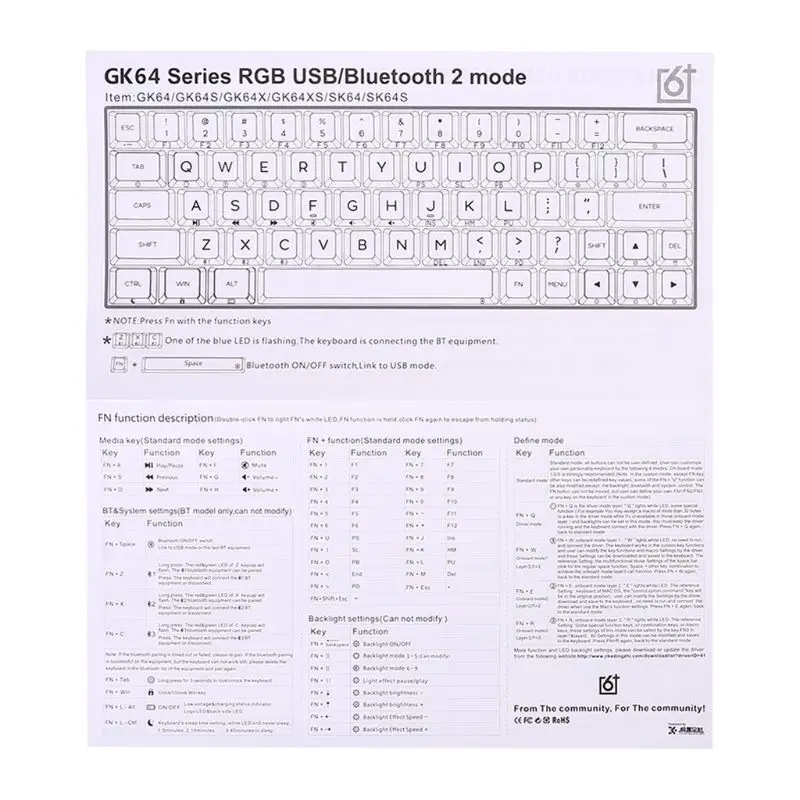 2.GK64XS Двухрежимная версия с перезаряжаемой литиевой батареей 1900ma