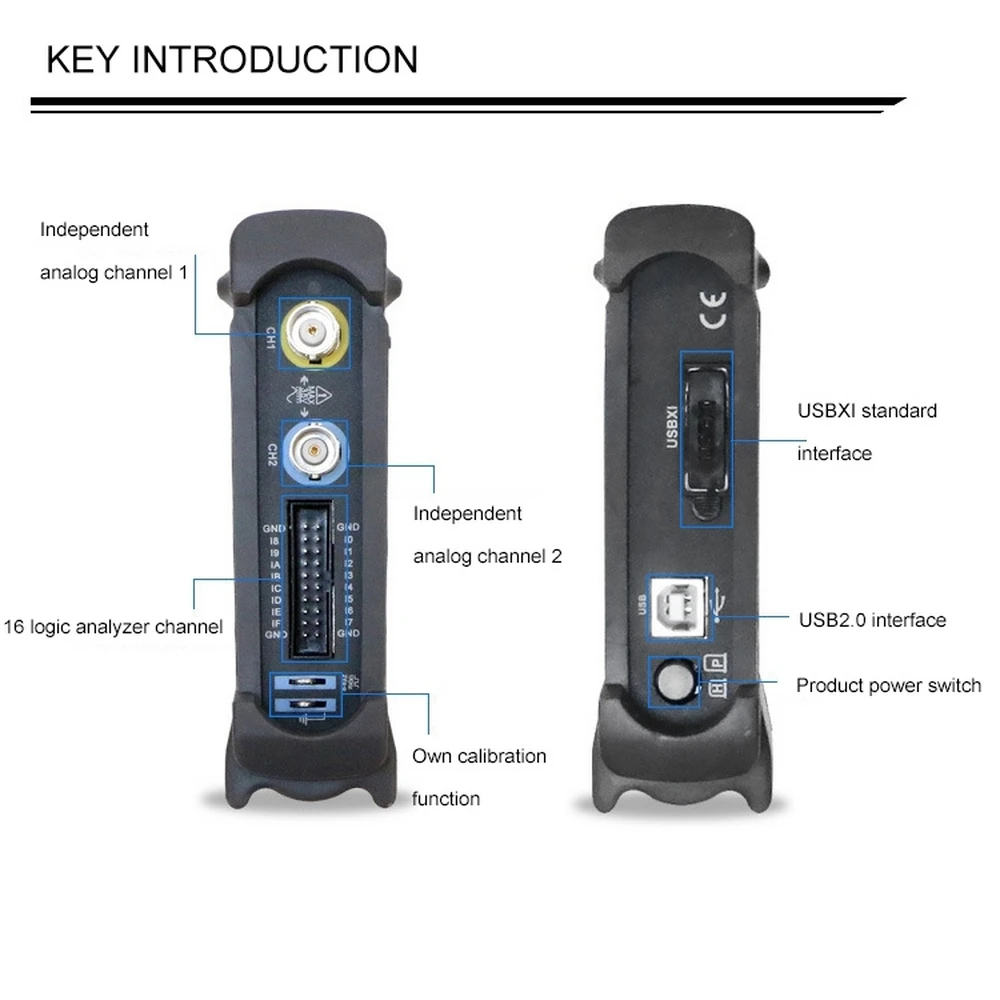 Полоса пропускания 20 МГц; Частота образцов 48MSA/s; Логический анализатор 16 каналов; Отличный промышленный дизайн-тот же анодированный алюминиевый корпус, что и iPad, которая не только красива и со вкусом, но и значительно повышает твердость поверхности алюминиевого сплава и обладает хорошей термостойкостью и сильной износостойкостью. Стандартный интерфейс USBXI (TM), легко вставляется в корпус USBXI (TM) для создания комбинированного инструмента.