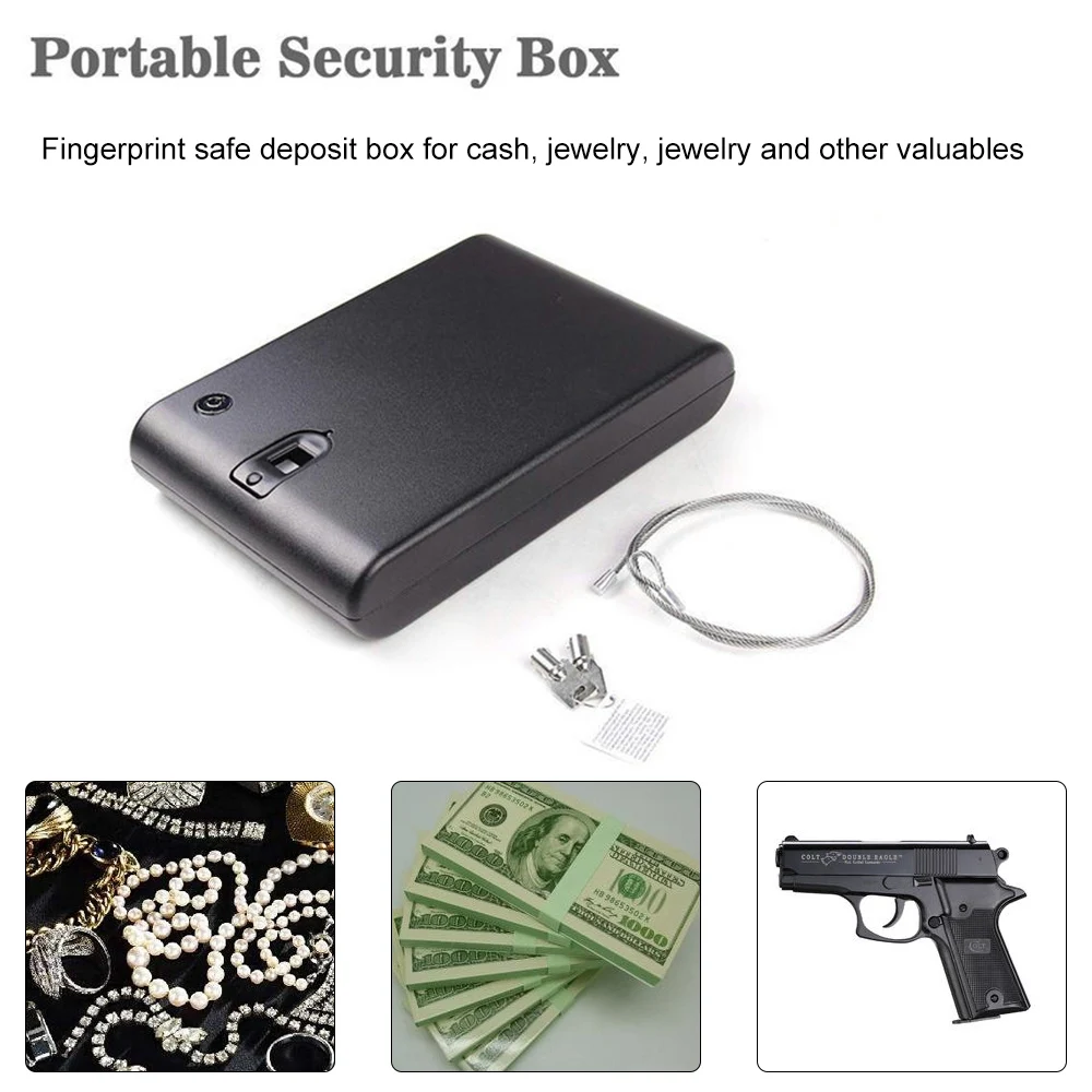 Сейф для отпечатков пальцев, портативная коробка безопасности, автомобильный Сейф, пистолет, безопасные ценные вещи, чехол для хранения ювелирных изделий, ручной пистолет, Strongbox