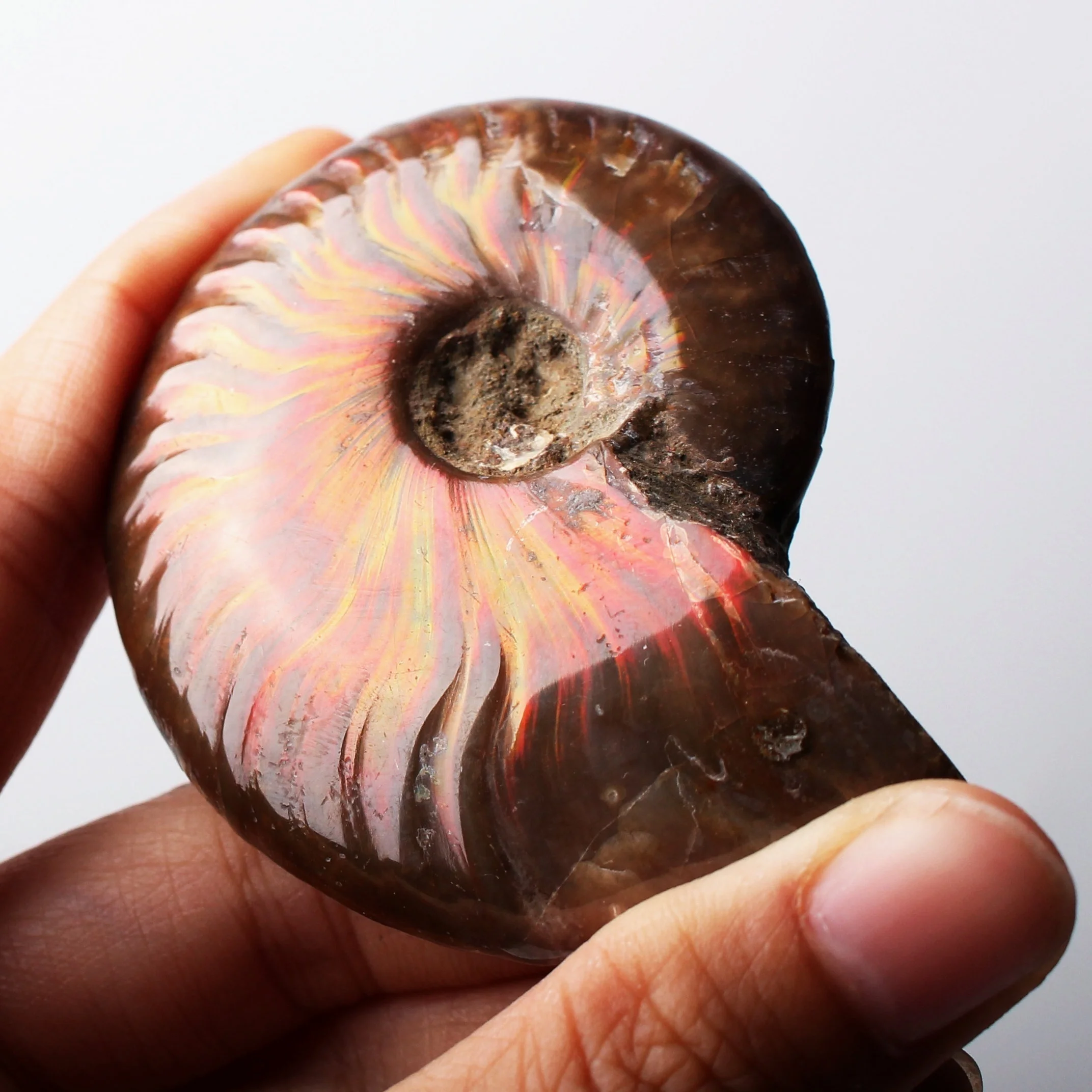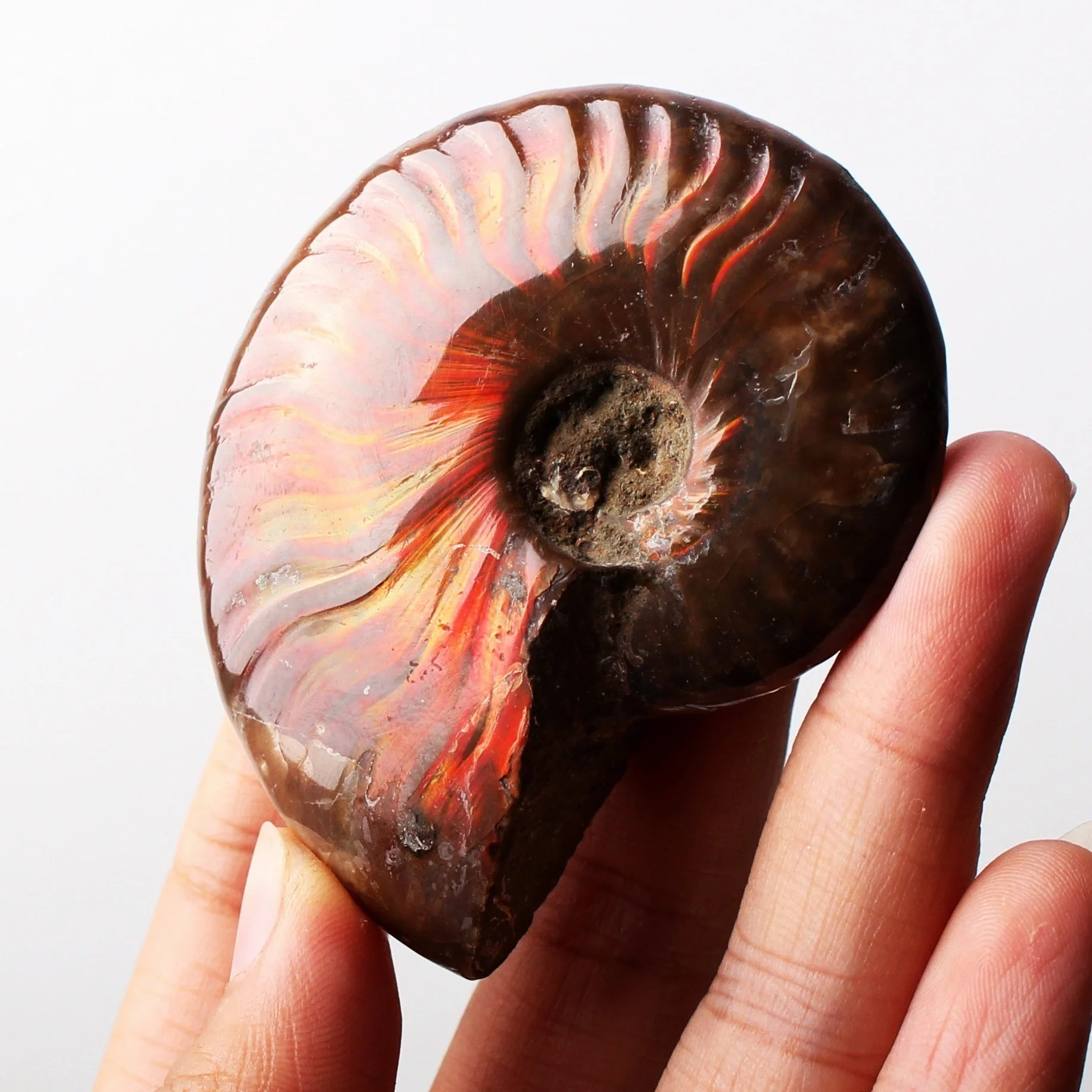 1 шт. редкий красный светильник, окаменелый аммоний корпус, цветная окаменелая оболочка, коллекция минеральных образцов