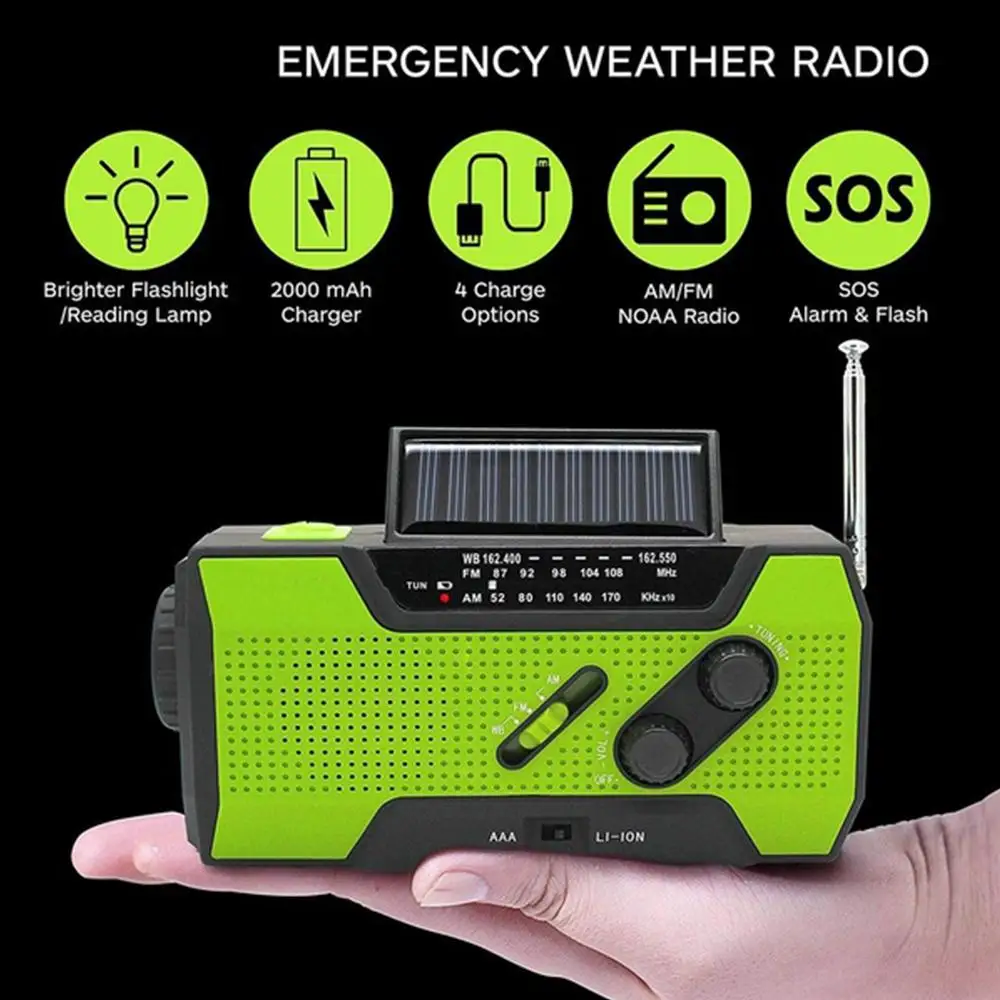 --- Радио с рукояткой имеет сильную антенну, прочный аккумулятор, компактный размер и легко носить с собой. Аварийное Радио имеет внутреннюю батарею 2000 мА · ч, которая более долговечна, чем батарея 1000 мА · ч и больше подходит для пикника, путешествий, кемпинга и лучшего выбора, чтобы добавить в свой автомобиль.