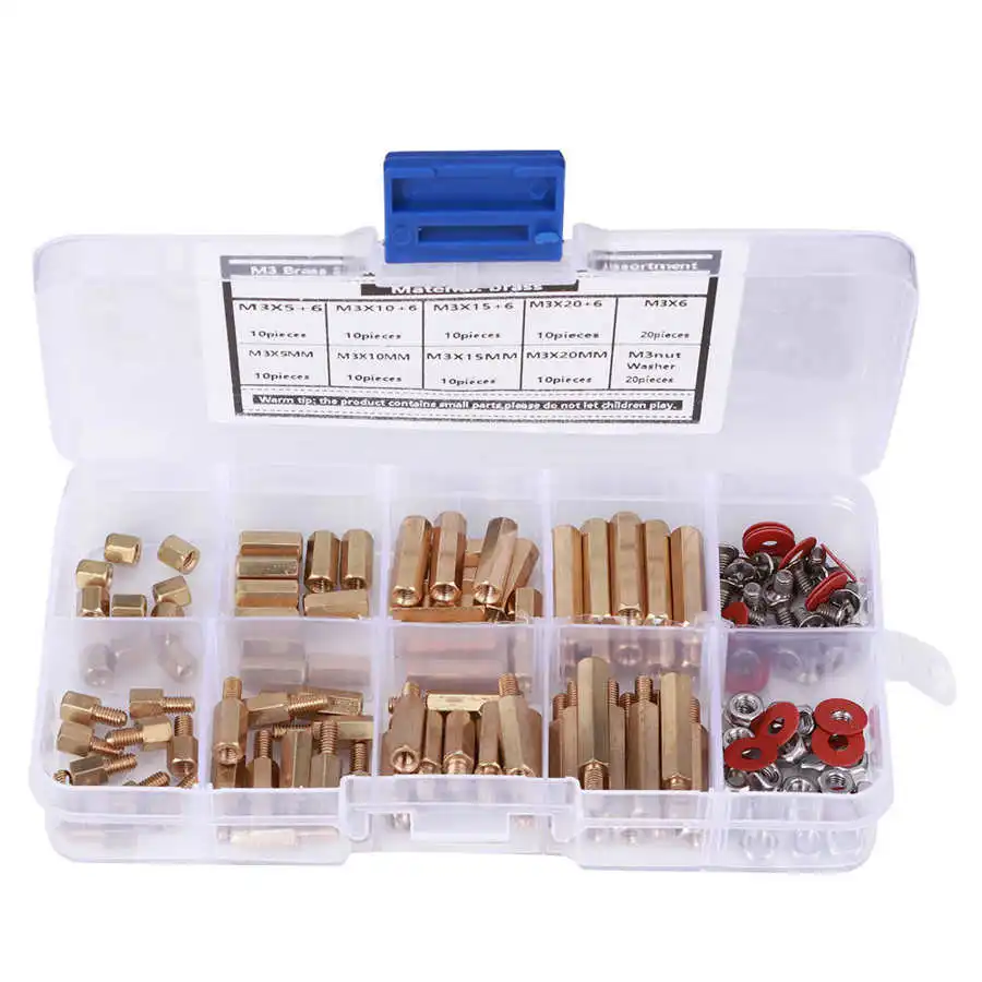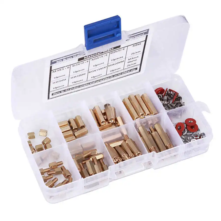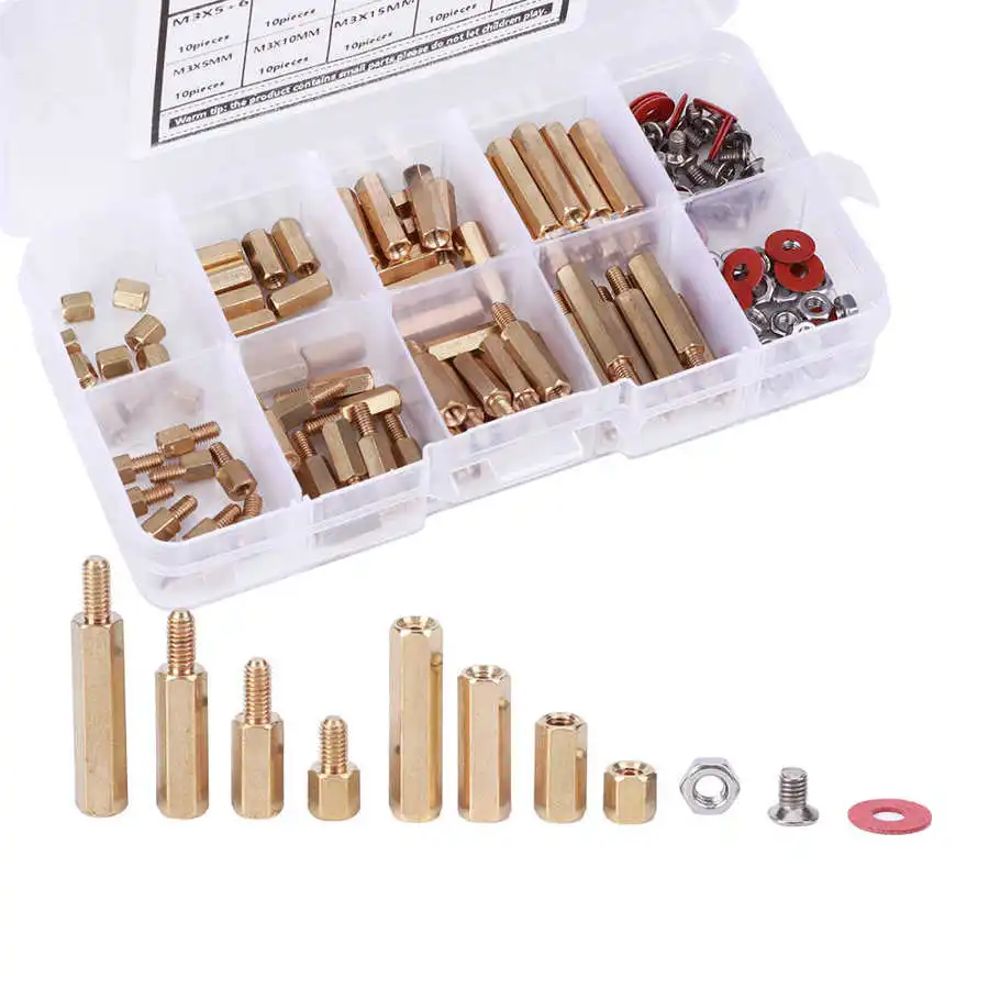 140 шт. M3 медные Опорные изоляторы Винты шайбы гайка ассортимент шестигранный набор аксессуары для оборудования