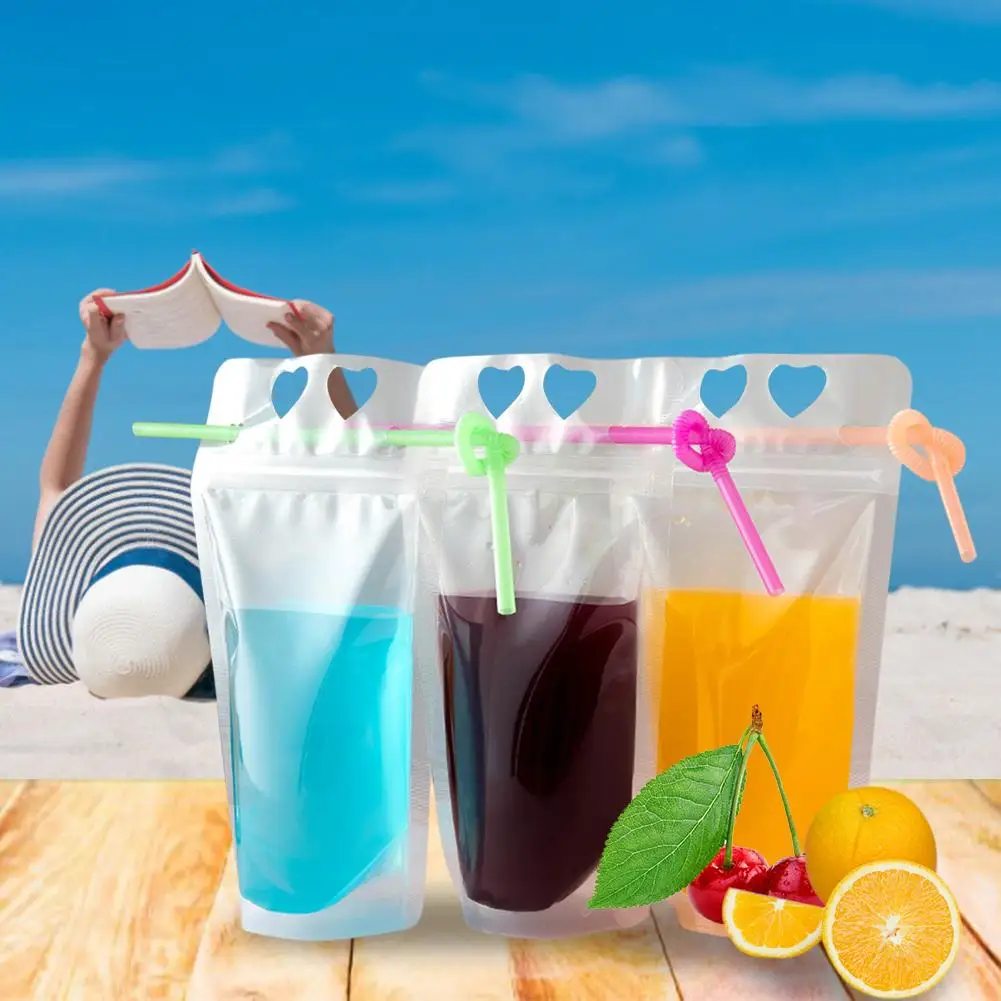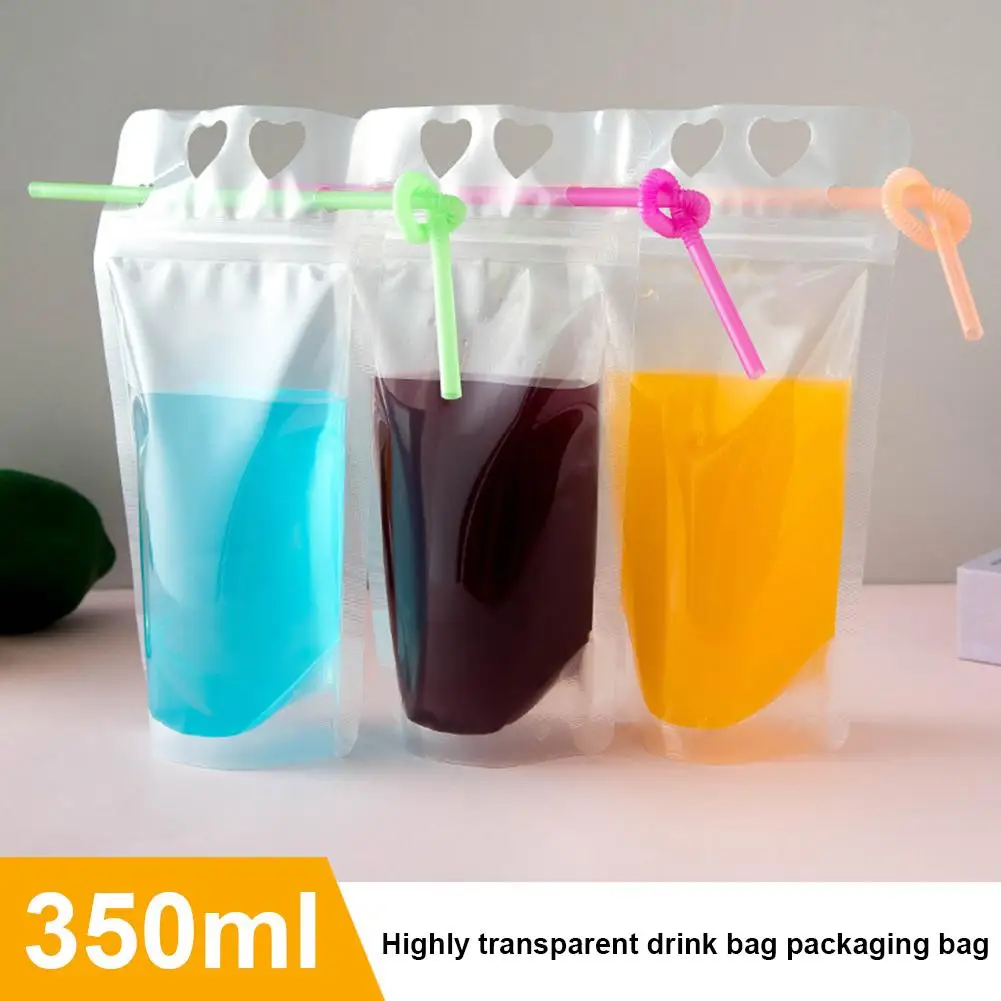 100 шт./компл. набор одноразовых мешков для напитков с соломинкой Reclosable 350 мл пакеты для хранения напитков для сока #