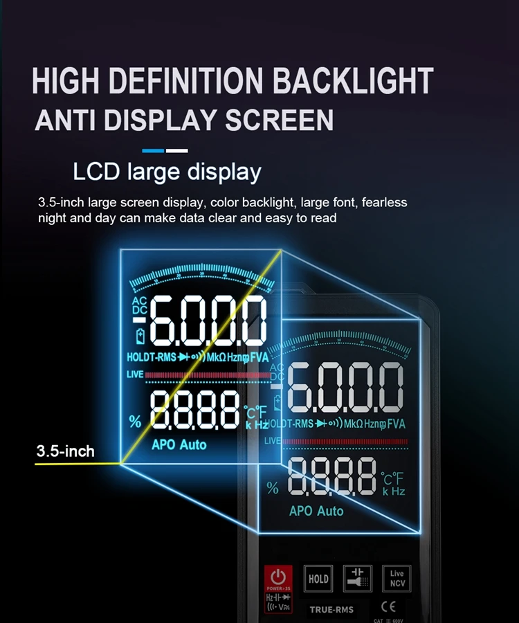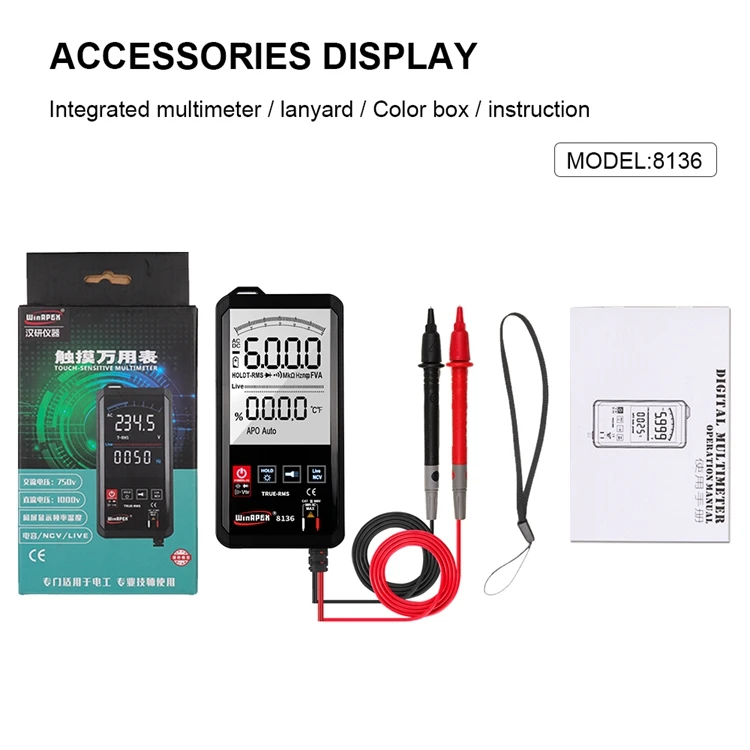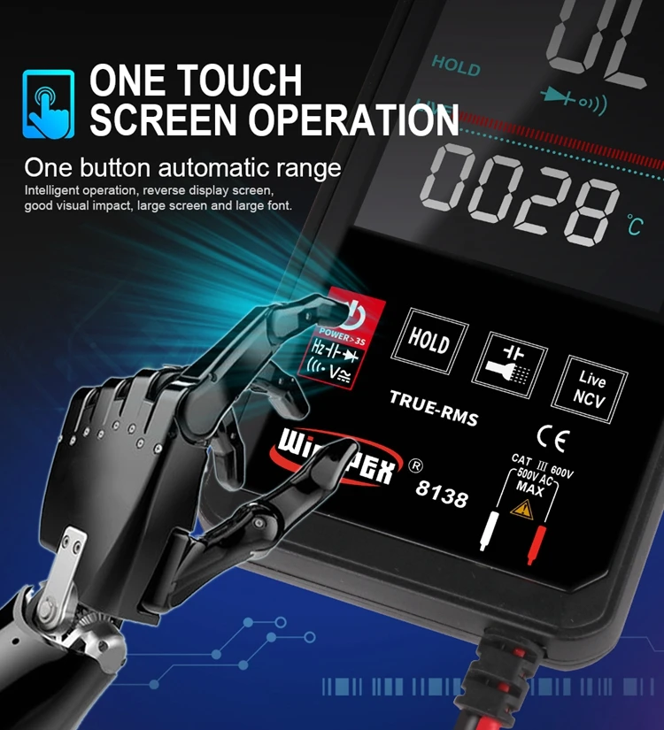Цифровой мультиметр с сенсорным экраном 6000 отсчетов напряжение переменного тока постоянного тока NCV истинное сопротивление температуры RMS измеритель емкости автоматические мультиметры