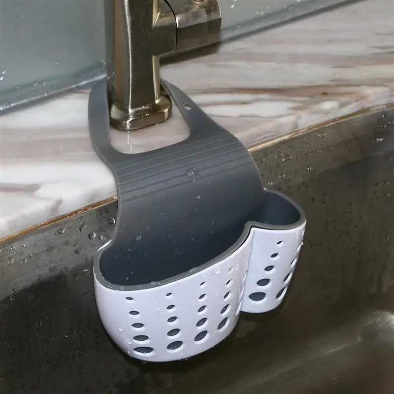 1 * Кухонная ванная подвесная корзина для хранения, толстый двойной чехол для раковины, пластиковый держатель для слива губки, органайзер для гаджетов, стойки (белый)