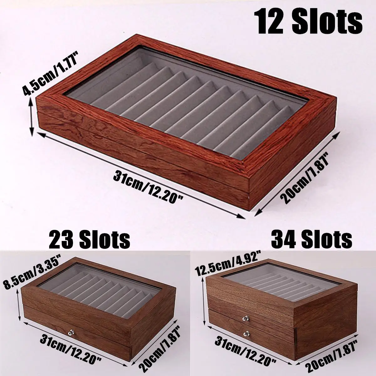 -Designed with a clear transparent acrylic top lid to enable easy viewing of the pen inside and keep the pens dust free.