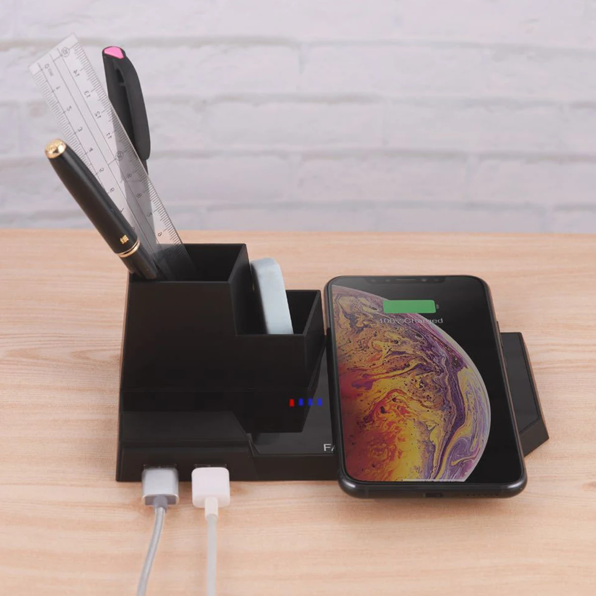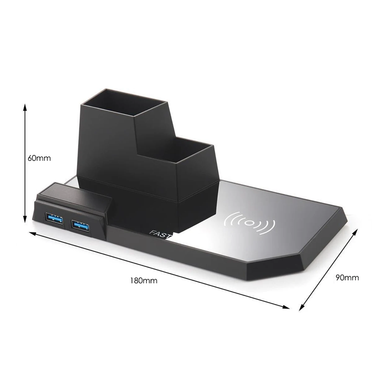 Быстрая Беспроводная зарядка 10 Вт и двойной выход USB порта, поддержка зарядки трех смартфонов одновременно1 х Беспроводное зарядное устройство