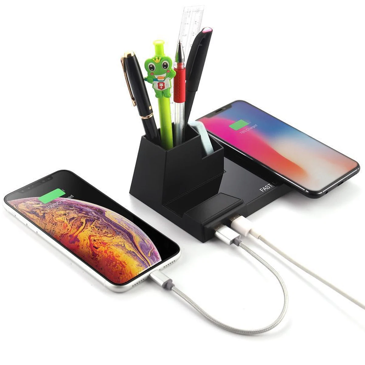 Модная новинка Qi Быстрая зарядка 10 Вт Беспроводное зарядное устройство Держатель для ручки Подставка для зарядки с двойным выходом USB держатель для телефона
