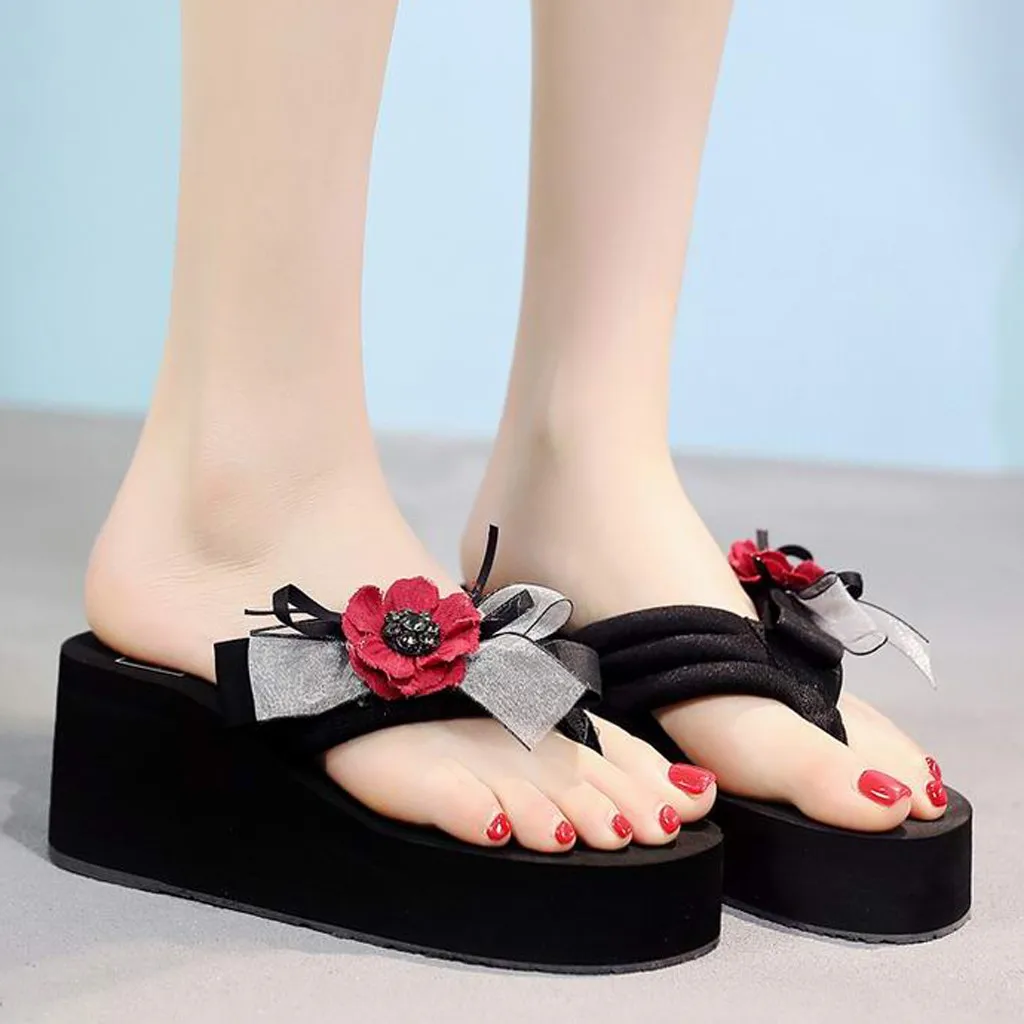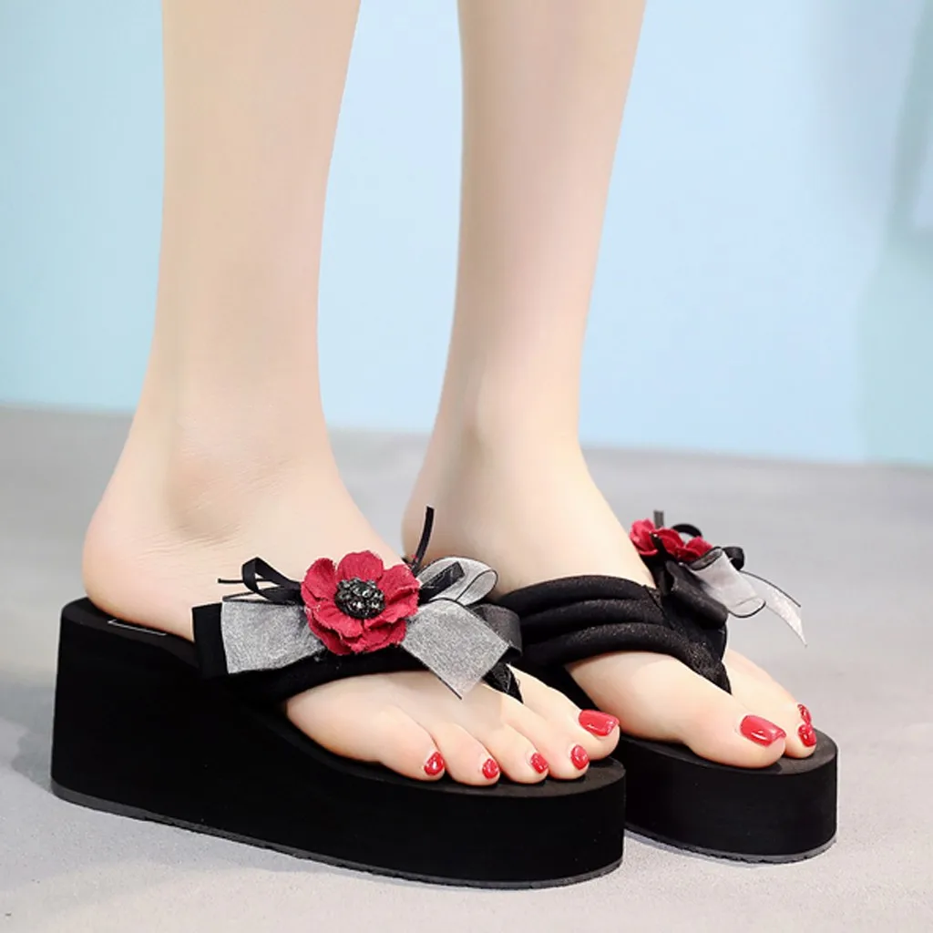 Sagace/женские босоножки; Сезон лето; Модель 2020 года; Женская обувь на танкетке с жемчужным цветком; Топ Тапочки с бантом из ленты; Модная женская обувь
