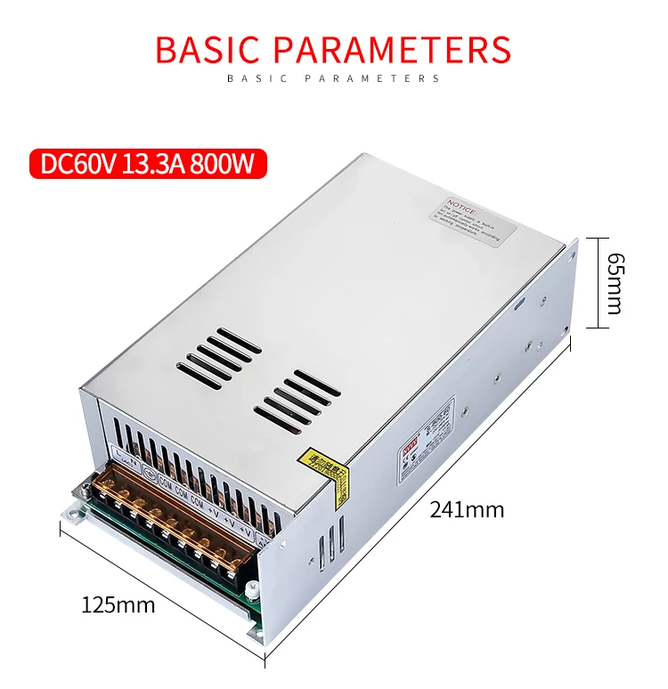 Название Импульсный источник питания Входное напряжение 90-132VAC/180-264VAC Модель S-800-70V (пользовательское издание) Регулируемый ± 10% Напряжение 70 в Мощность 800 Вт Размер 241*125*65 ммПроект Технические параметры Выходное напряжение постоянного тока 12 В 24 В 27 в 36 В 48 В 70 в (этот товар) Номинальный выходной ток 60А 33,3a 29.6A 22.2A 16.6A 11.4A Номинальная выходная мощность 720 Вт 800 Вт 800 Вт 800 Вт 800 Вт 800 Вт Пульсация и шум <150 мВ <240 мВ <240 мВ <240 мВ <240 мВ <240 мВ Точность выходного напряжения ± 1% Диапазон регулируемого выходного напряжения ± 10% Регулирование нагрузки <± 1.2% <± 1% <± 1% <± 1% <± 0.5% <± 0.5% Линейное регулирование <± 1% Защита от перегрузки на выходе 105%-135% Тип: Выход постоянного тока