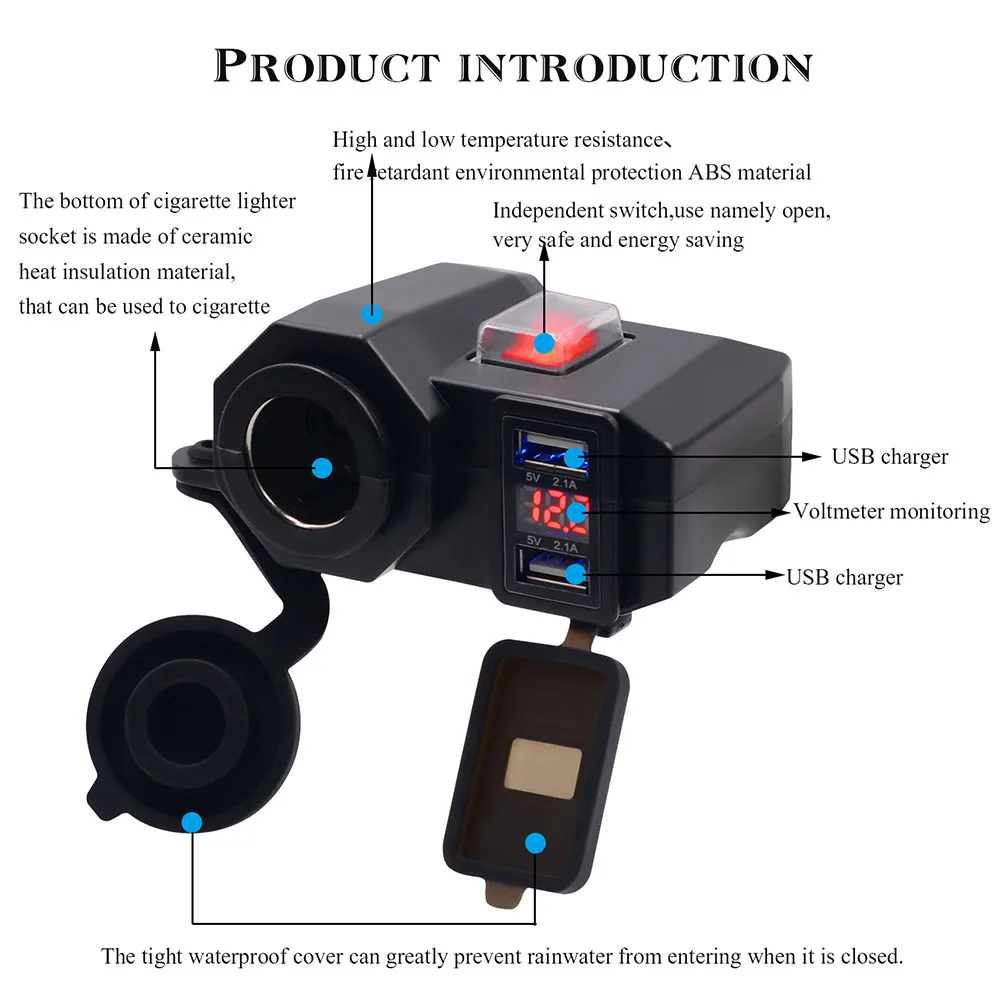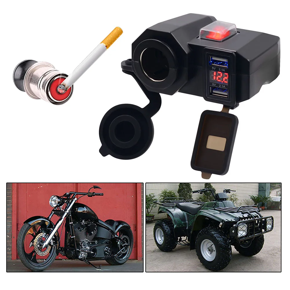 Мотоцикл водонепроницаемый USB зарядное устройство розетка с вольтметром светодиодный прикуриватель 12/24 в