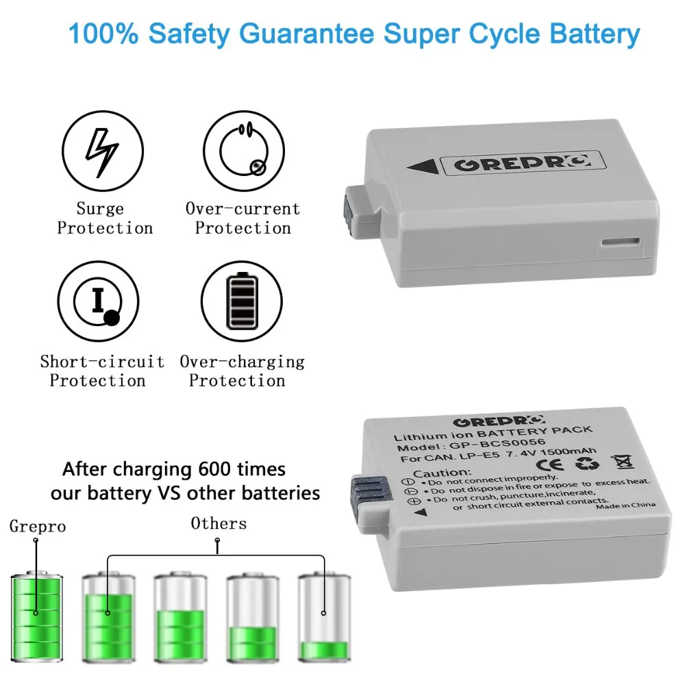 1500 мАч LP-E5 аккумулятор камеры + светодиодный двойной зарядное устройство с портом type-C