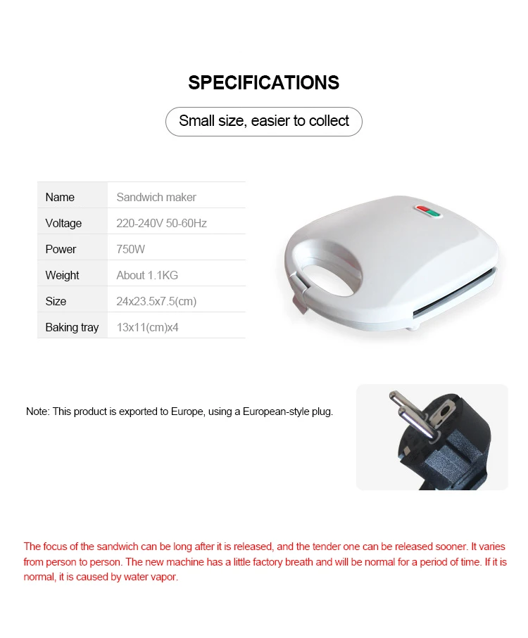 Название продукта: вафельница Номинальное напряжение: 220 В Номинальная частота: 50 Гц Номинальная мощность: 750 Вт Материал: антипригарное покрытие Размер продукта: 24*23,5*7,5 см