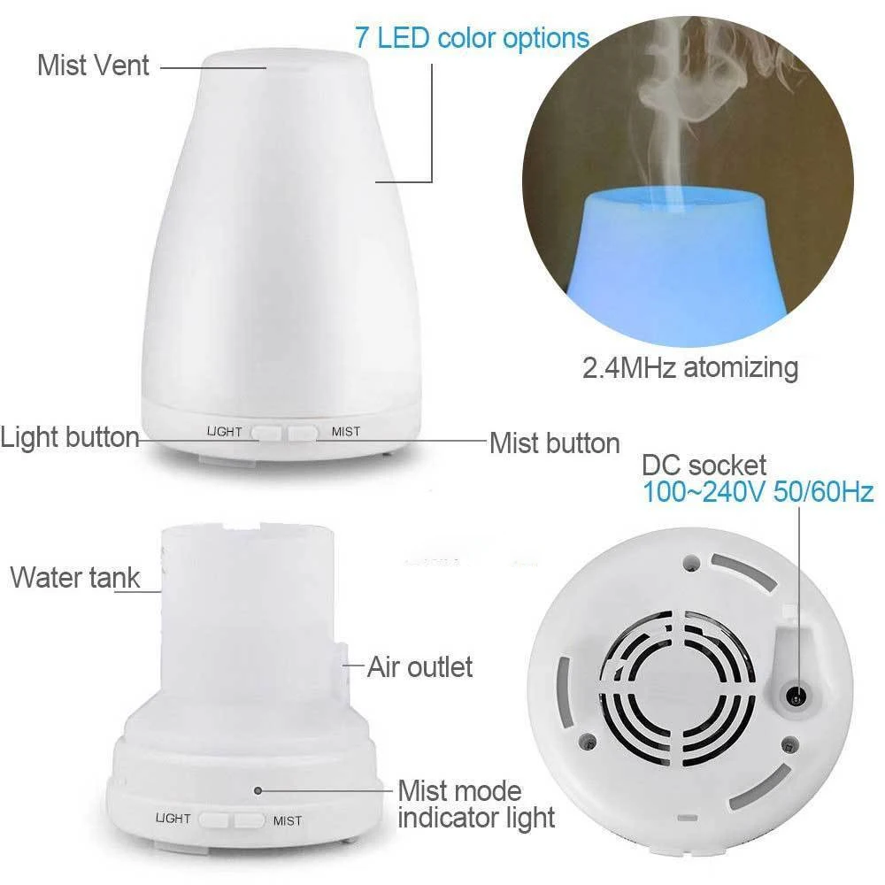Увлажнитель воздуха ультразвуковой аромадиффузор увлажнитель для дома эфирное масло диффузор тумана Fogger с 7 светодиодный свет цвета