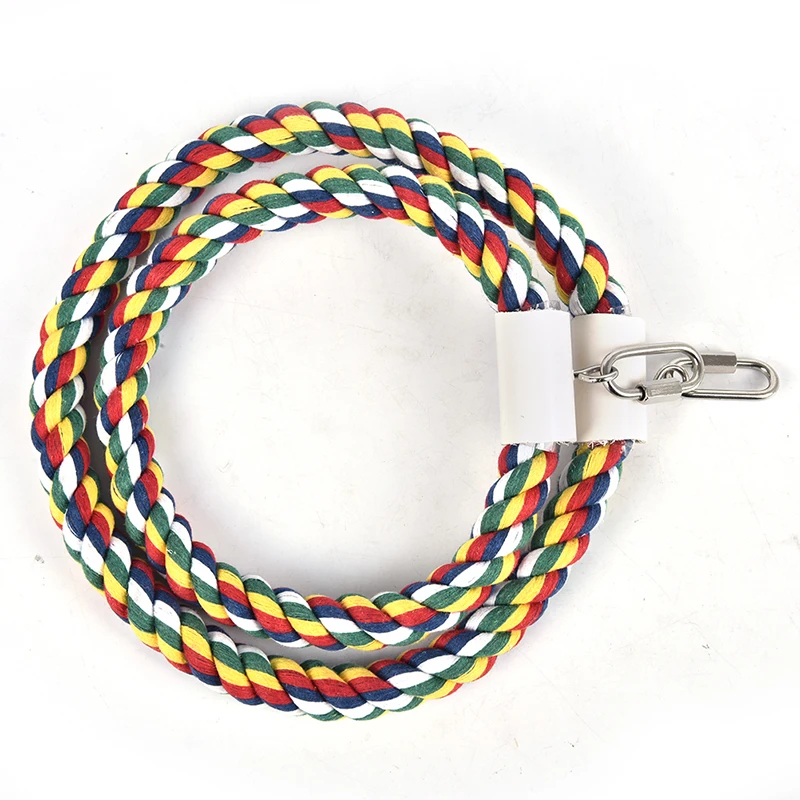 1. Изготовлен из высококачественного хлопкового каната, он нетоксичный и безвредный, который безопасен для домашних животных, чтобы играть и жевать. 2. С яркими цветами, легко привлечь внимание птицы и добавить больше удовольствия. 3. Разработан с прочными цепями, его легко установить и двойные головки можно зафиксировать в любом месте клетки. 4. Обеспечивает место в клетке для питомца для игры и может использоваться для тренировки клюва и ног птицы. 5. Форма может быть изменена по желанию, что необходимо для птиц.