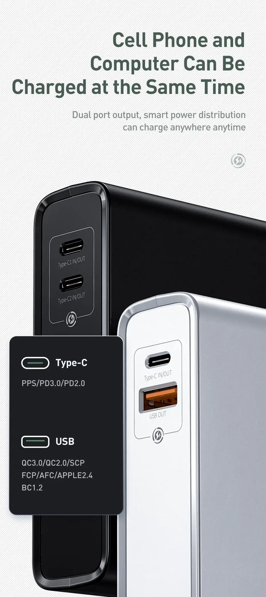 Type-C + USB выход: 18 Вт + 18 Вт Макс