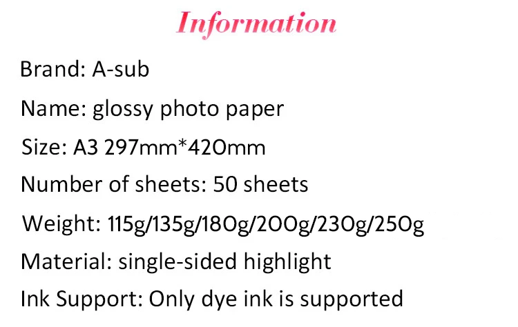 A3 50 листов струйная глянцевая фотобумага водонепроницаемая для струйного принтера свадебная фотография