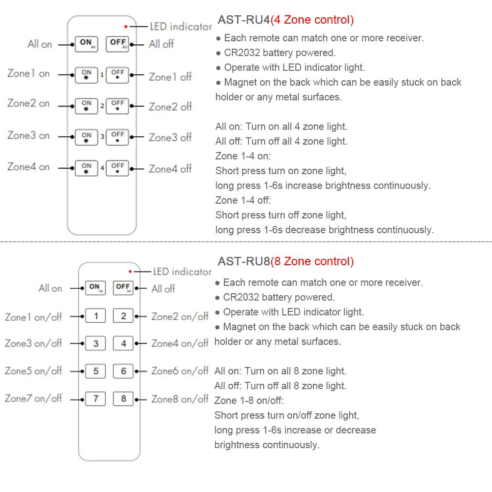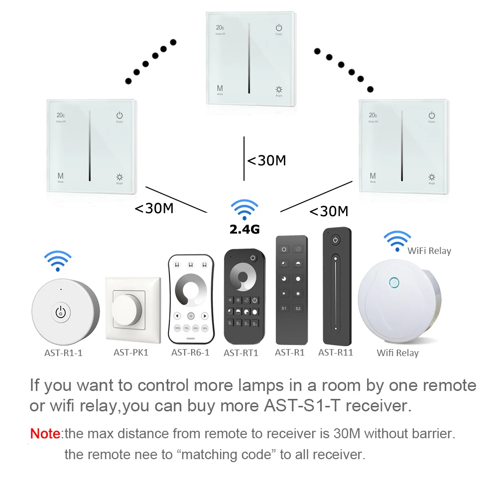 Если вы хотите управлять несколькими лампами с помощью одного пульта ДУ, вам нужно купить еще один приемник(AST-S1-T). Перед использованием Используйте только «Match Code» между отправителем и приемником.